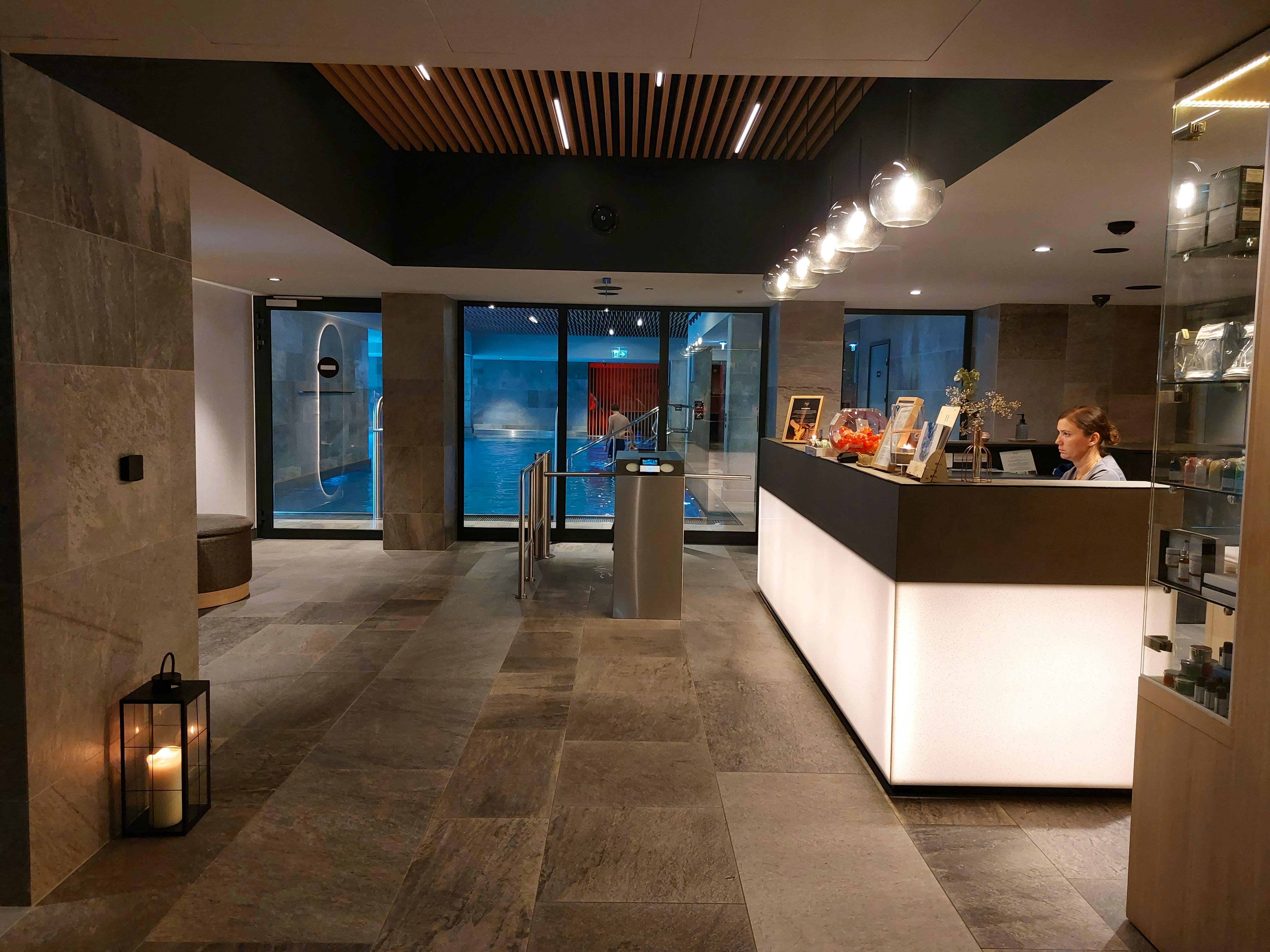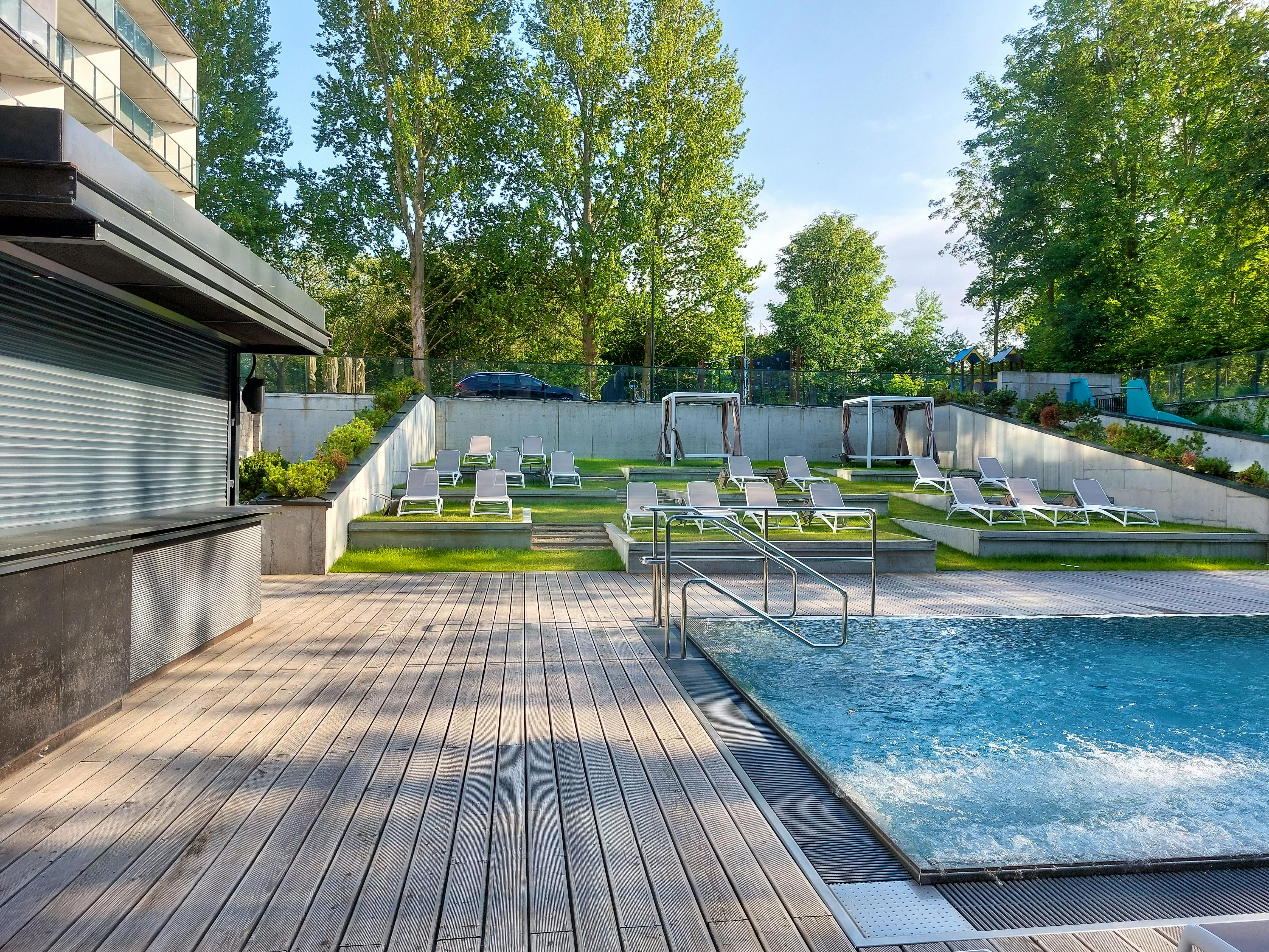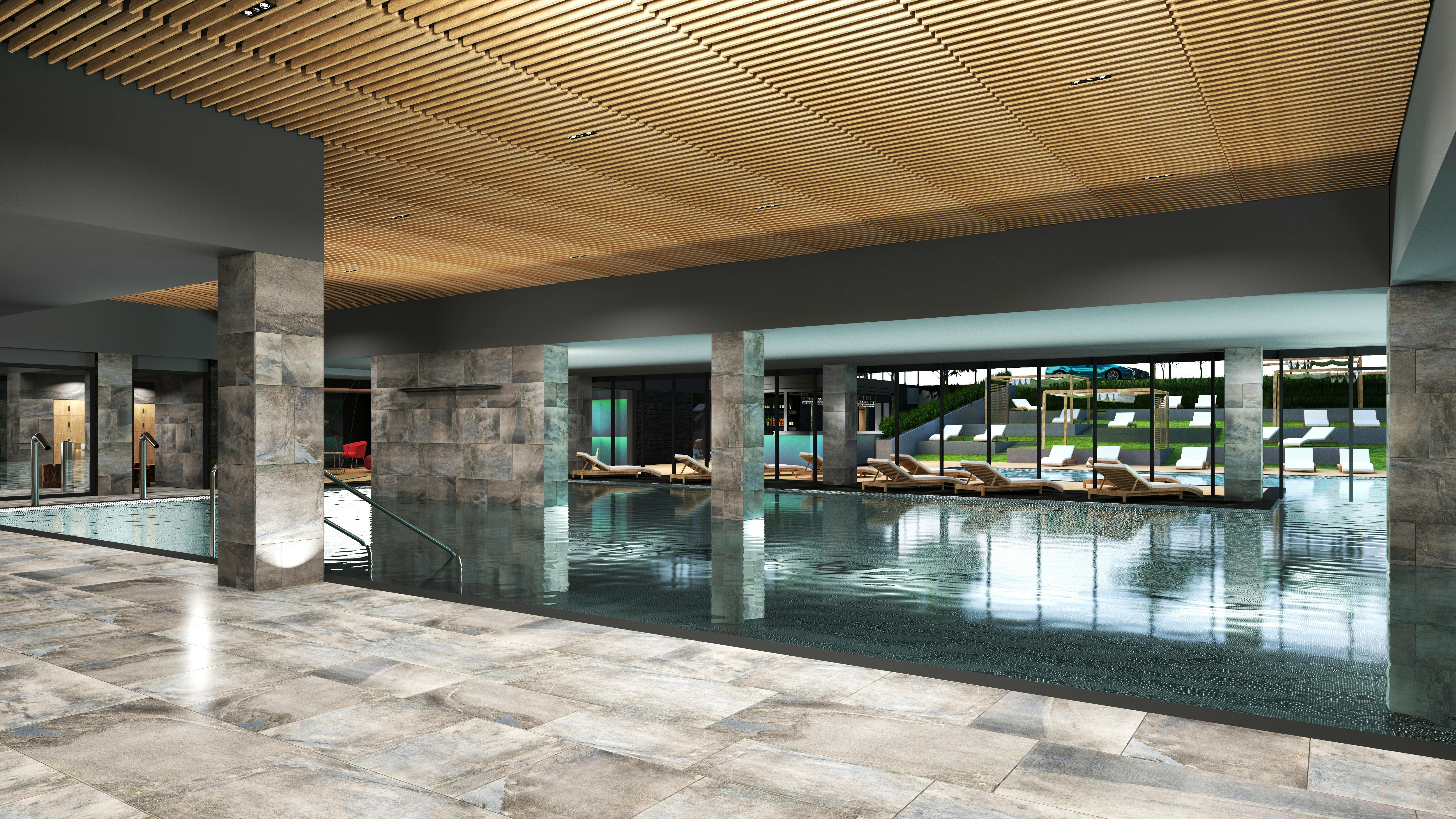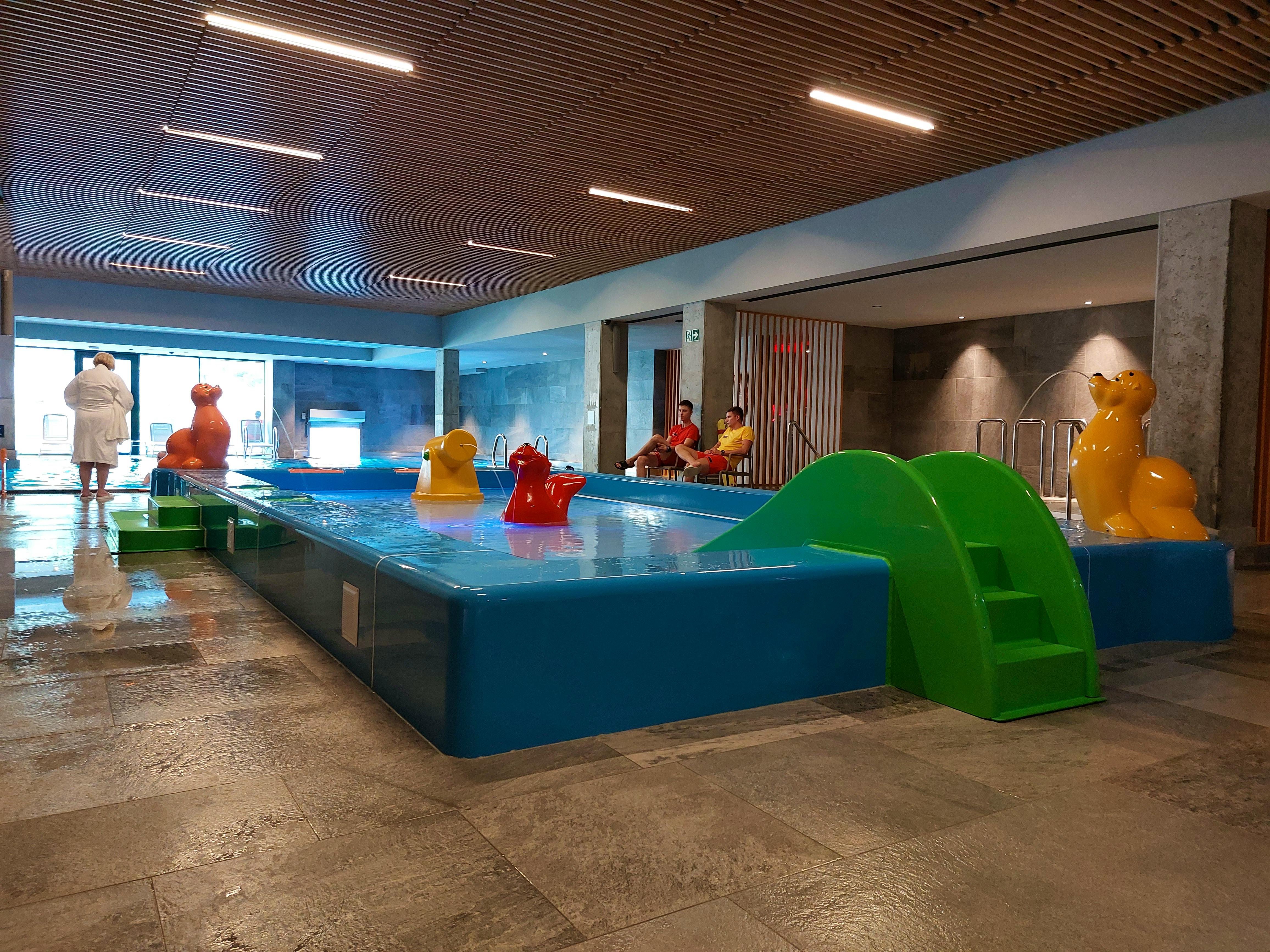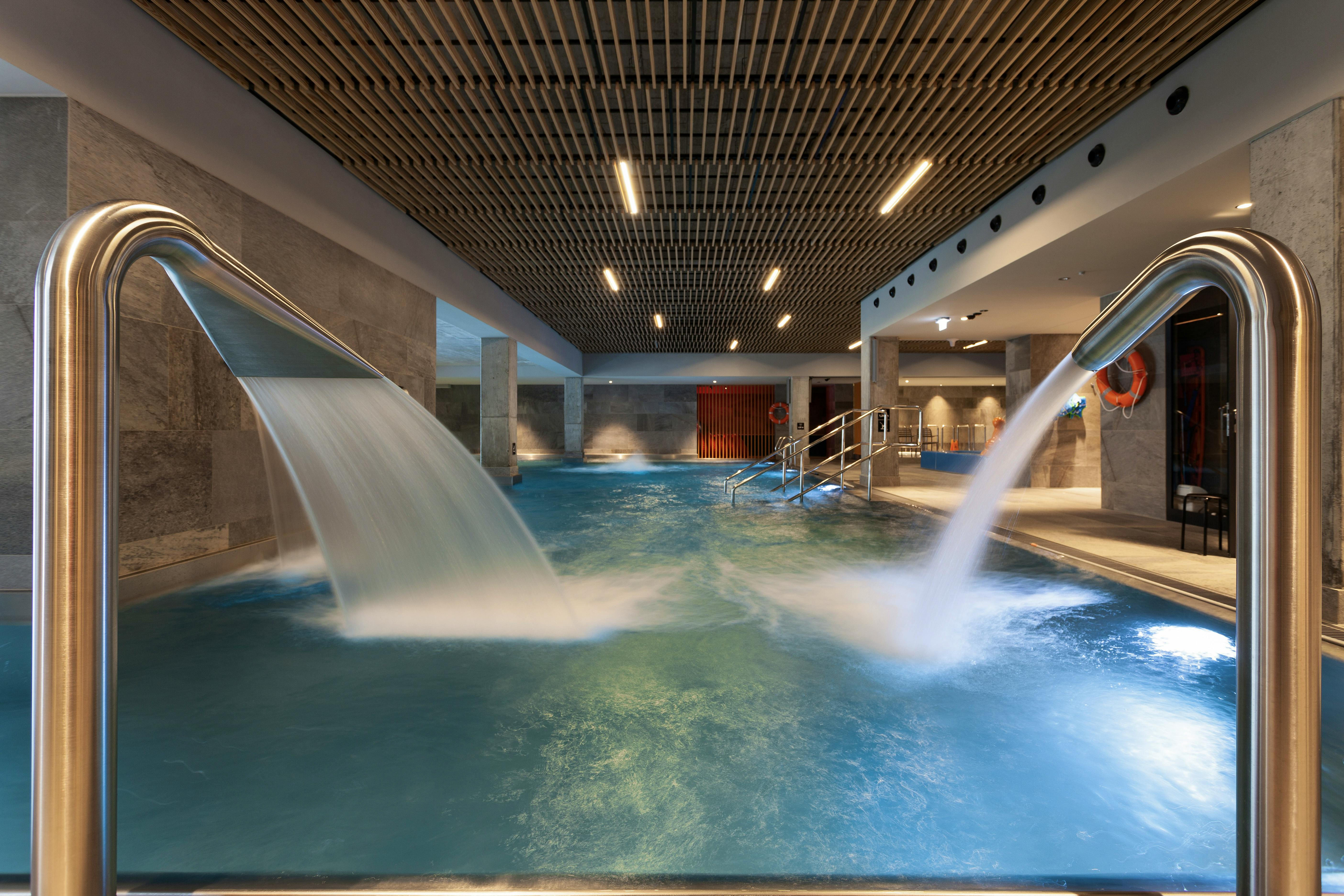 Der exklusive Aquapark ist mit Schwimmbecken und Erlebnisbecken für Kinder mit Rutschen, Whirlpools und Infinity-Pool auf dem Dach, sowie einer Saunalandschaft (Sauna, Dampfbad, Kräutersauna und Sole-Dampfbad), außerdem mit einem Außenpool mit Rutschen und Liegewiese (8 bis 22 Uhr geöffnet). Es gibt Cardio-Fitness und einen Kraftraum.