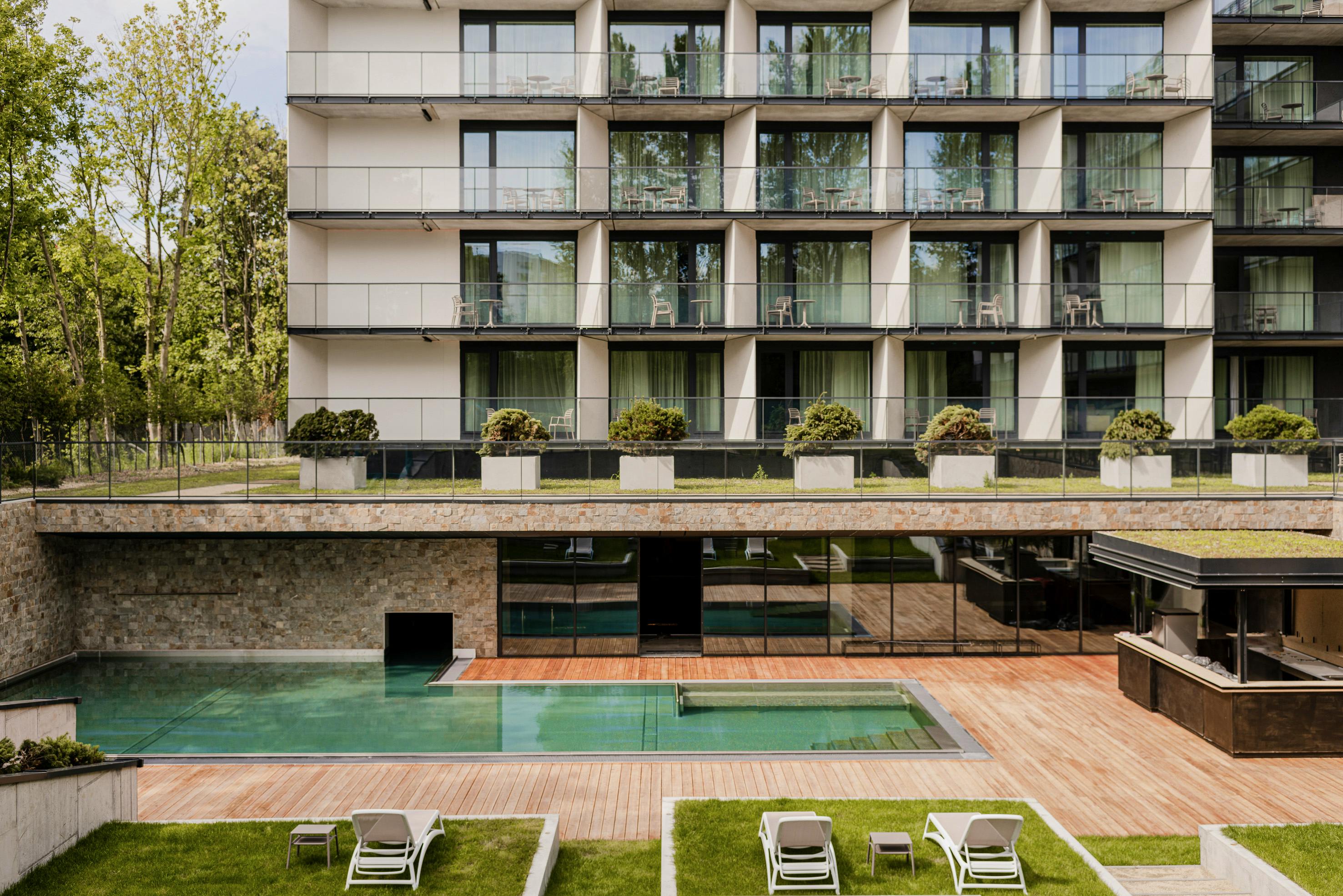 Außenpool Radisson Resort – © Sybille Schober Hauptrestaurant im Radisson Resort – © Sybille Schober Außenbereich im Radisson Resort Kolobrzeg – © Zdrojowa Hotels Zimmerbeispiel Standard im Radisson Resort Kolobrzeg – © Zdrojowa Hotels Rooftop Pool im Radisson Resort Kolobrzeg – © Zdrojowa Hotels