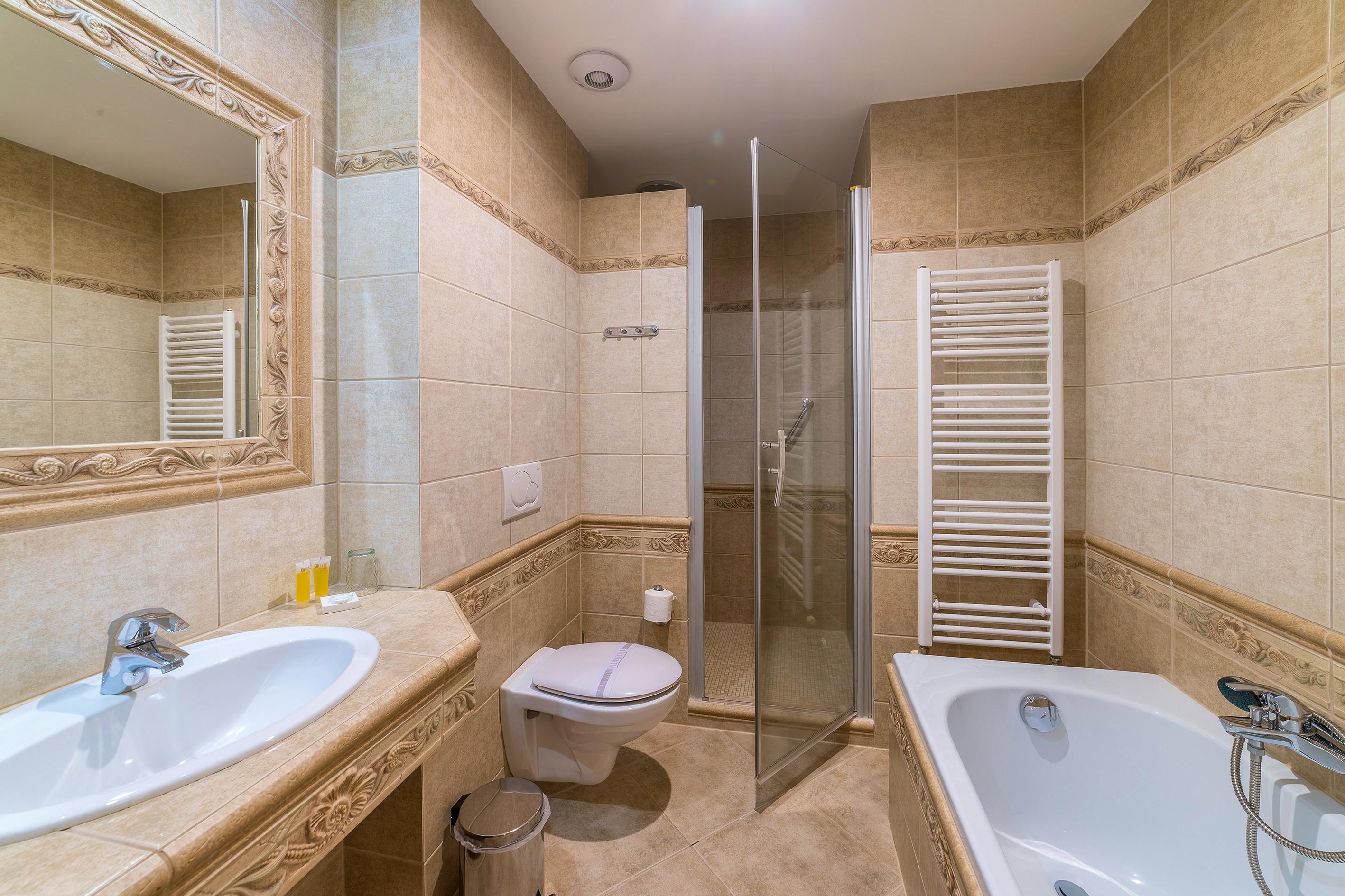 Kategorie Superior: Die Zimmer sind geräumiger, haben Blick zur Hof- oder Gartenseite und verfügen über einen Balkon. Zur weiteren Ausstattung gehören neben einer Dusche auch eine Wanne sowie ein Sofa.