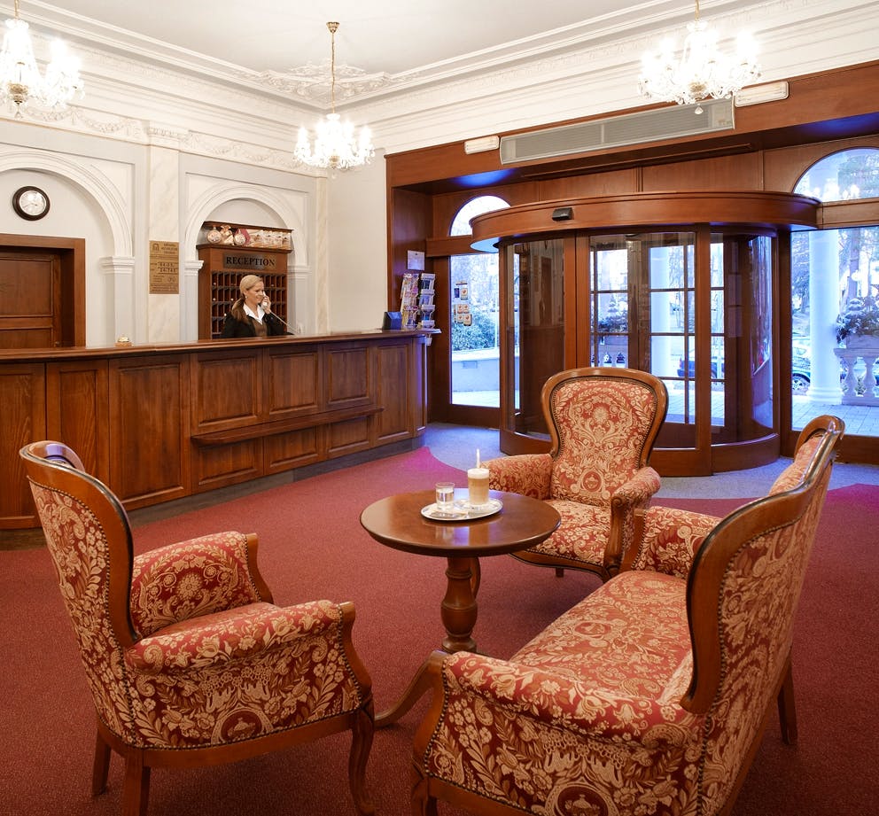 Franzensbad - Kurhotel Imperial – © Lázenský hotel Imperial****Superior Kurhotel Imperial - Aussenansicht – © Bad Franzensbad AG Kurhotel Imperial in Franzensbad - Rezeption – © Bad Franzensbad AG Kurhotel Imperial in Franzensbad - Lobbybar – © Bad Franzensbad AG Kurhotel Imperial in Franzensbad - Schwimmbad – © Bad Franzensbad AG