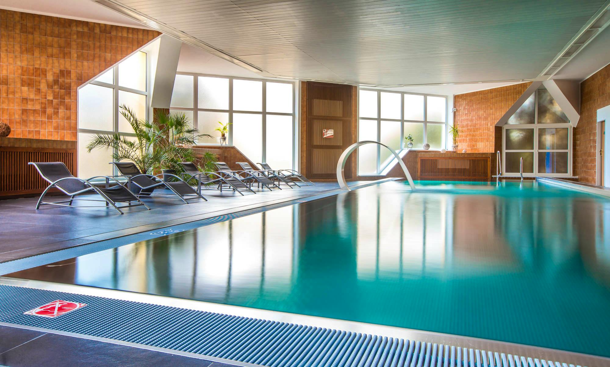 • Zum Wellness-Bereich des Kurhotels gehören Innenpool (ca. 15 x 7,5 Meter), Sauna, Dampfbad, Solarium, Cardio-Fitness-Bereich sowie ein beheizter Außenpool (ca. 10 x 5 Meter).