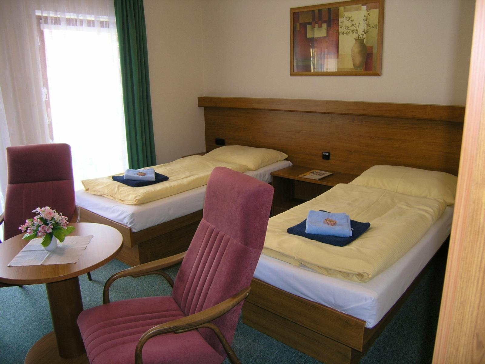 Die 25 Nichtraucherzimmer sind gemütlich und zweckmäßig eingerichtet und verfügen über Dusche/WC, Föhn, SAT-TV (auch deutsche Sender), WiFi, Telefon, Mietsafe (10 € pro Aufenthalt) und Kühlschrank und Balkon. Die Einzelzimmer befinden sich in der 4. Etage, haben teilweise schräge Wände und keinen Balkon.