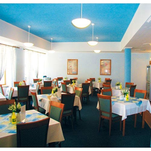 Zum Hotel gehören ein Lift, ein Speiseraum sowie ein Sportraum mit kleiner Fitness-Ecke und Tischtennisplatte. Das Schwimmbad und die Kurabteilung befinden sich im benachbarten Kurhotel Palace I (20 Meter entfernt).