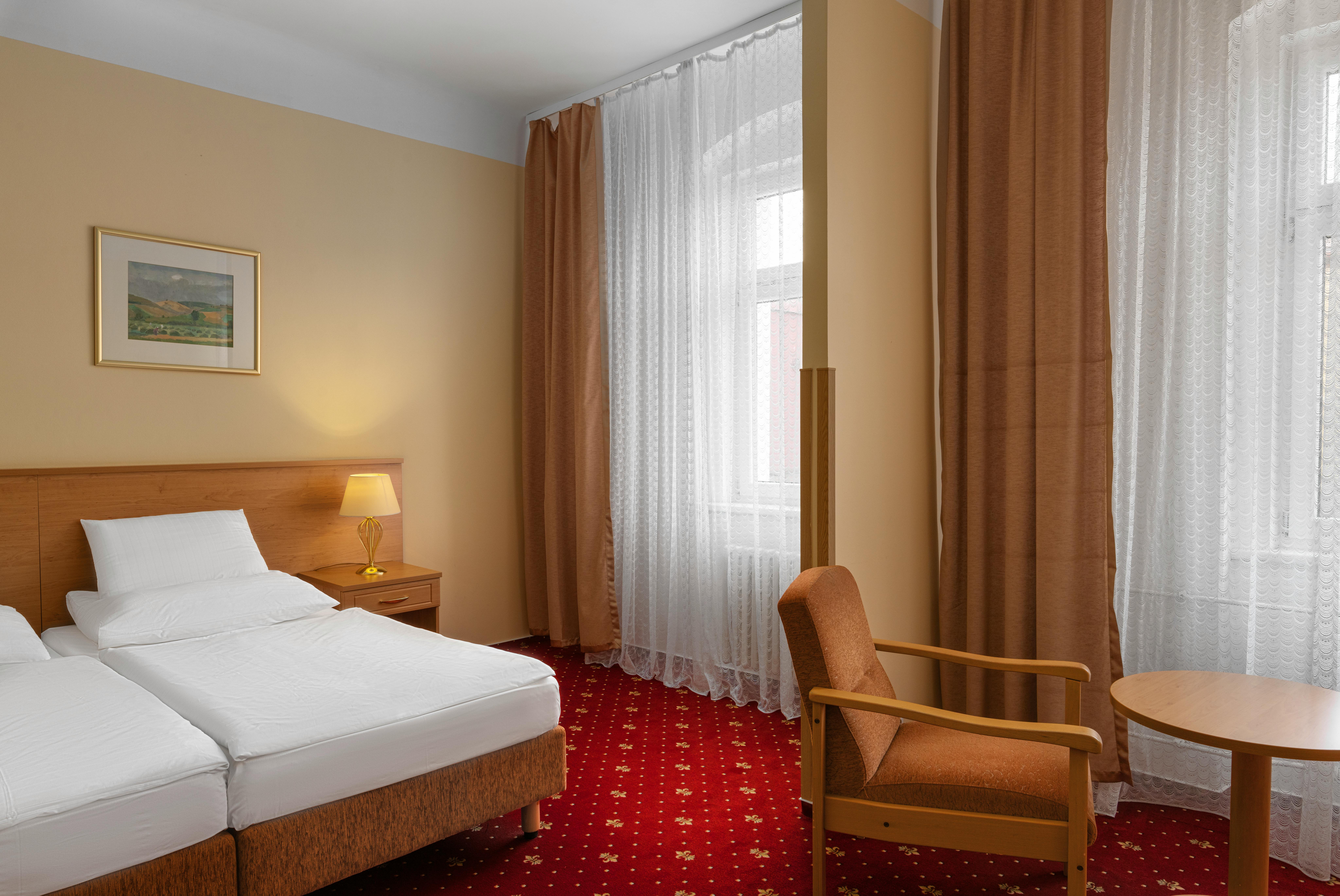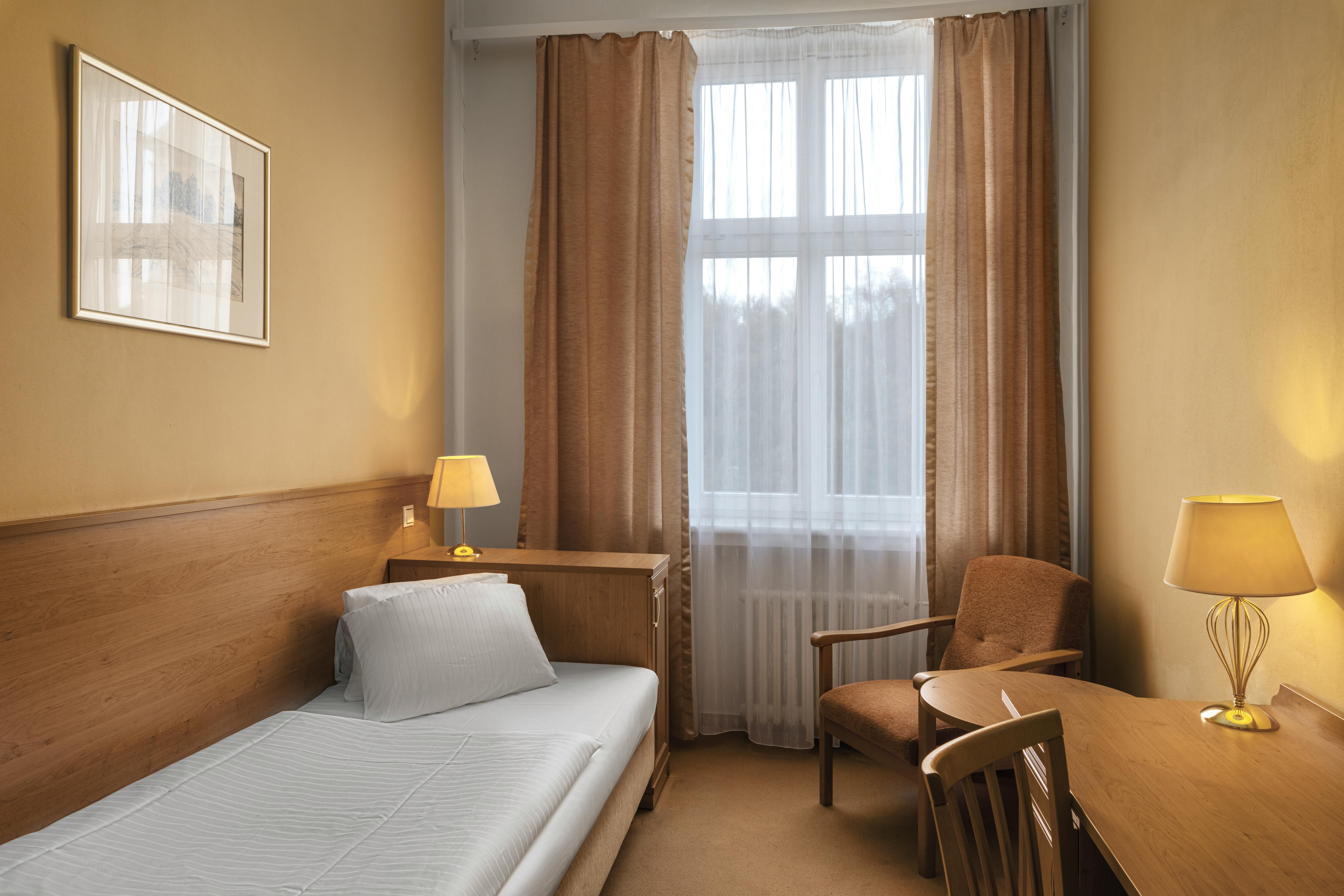 Das traditionelle Kurhotel liegt direkt im Zentrum von Franzensbad, am oberen Kurpark, nur wenige Schritte von der Fußgängerzone entfernt. Auf Grund seiner Lage ist es vor allem für Gäste geeignet, die besonders auf Ruhe und Fürsorge angewiesen sind.