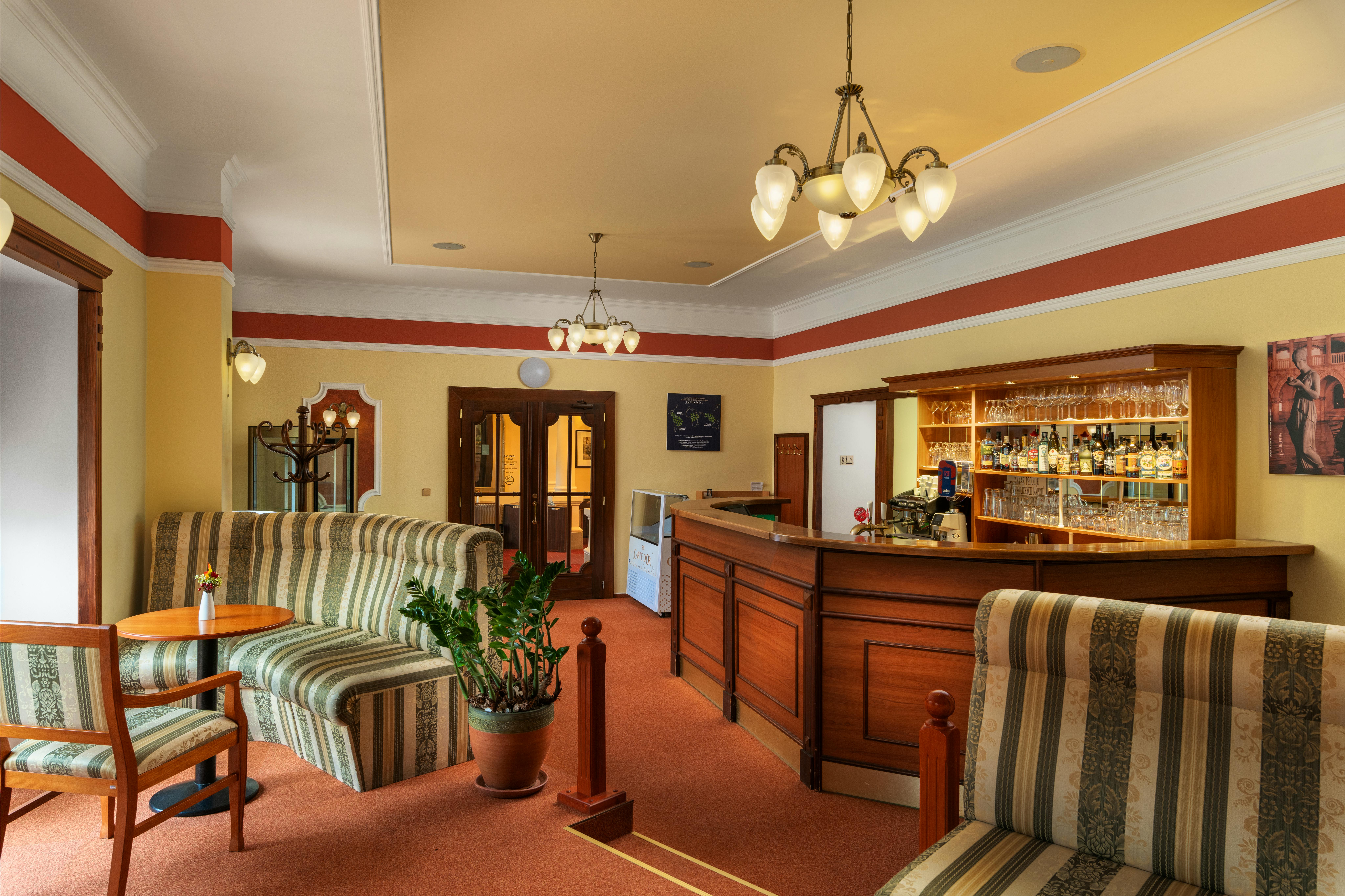 Die gemütliche Lobby Bar bietet neben einer großen Auswahl an mährischen und internationalen Weinen, erstklassigen italienischen Kaffee sowie Gebäck aus eigener Konditorei an. Außerdem finden hier regelmäßig Livemusik-Veranstaltungen statt.