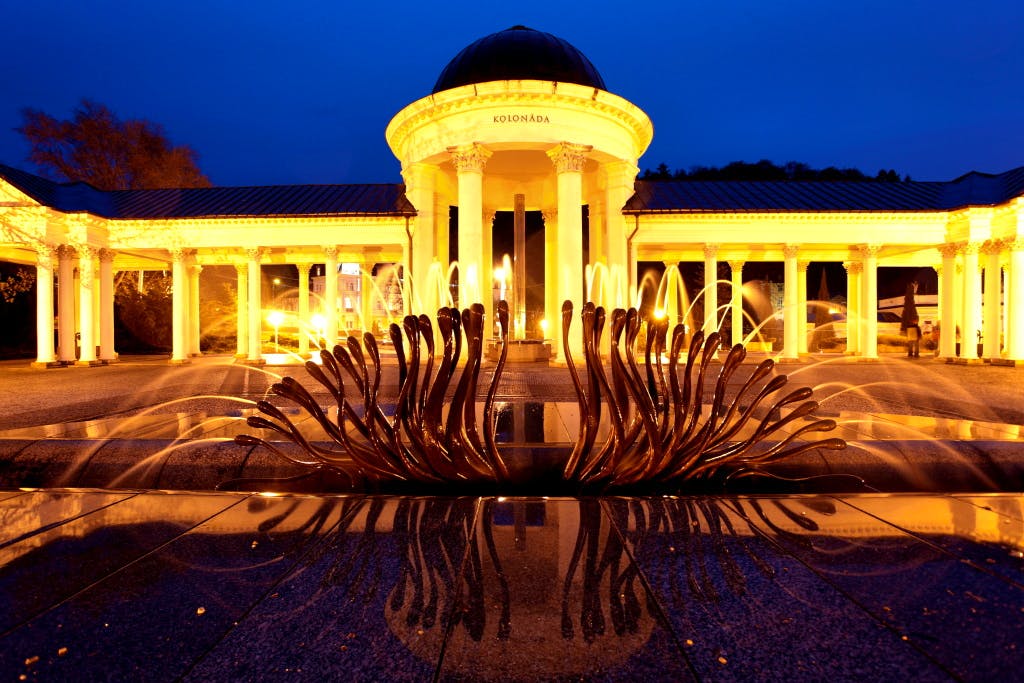 Sie ist die bekannteste Sehenswürdigkeit Marienbads. Das runde Becken des Brunnens trägt in der Mitte eine steinerne Blüte. 250 Wasserdüsen untermalen bekannte Musikkompositionen und machen dies zu einem einzigartigen Genuss. Zu jeder ungeraden Stunde treffen sich viele Gäste vor der Kolonnade, um der Musik zu lauschen und das Spiel des Wassers zu bestaunen. Abends erhellt zauberhaftes Licht den Platz und die "singenden" Wasserspielen werden zu einem unvergleichlichen Erlebnis.