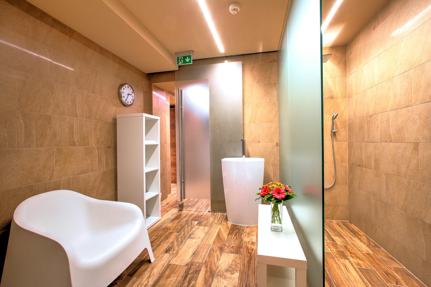 Zum Wellnessbereich gehören eine Sauna und ein Whirlpool.