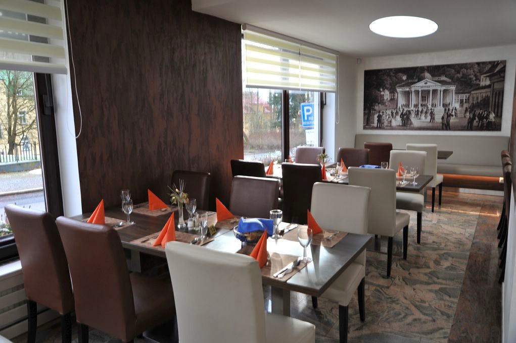 Das Kurhotel Richard befindet sich in ruhiger Lage, am Rande des Waldparks von Marienbad, gegenüber der russisch-orthodoxen Kirche St. Vladimir. Das Stadtzentrum und die Kolonnaden von Marienbad sind in nur wenigen Gehminuten erreichbar.