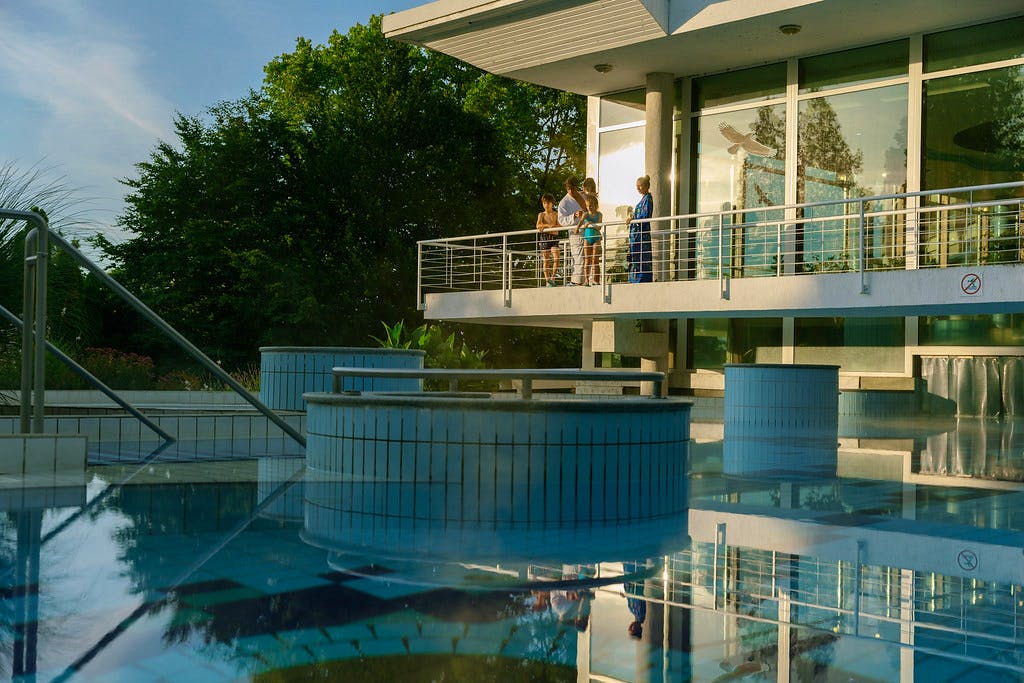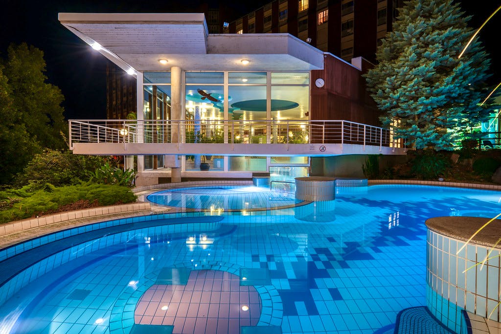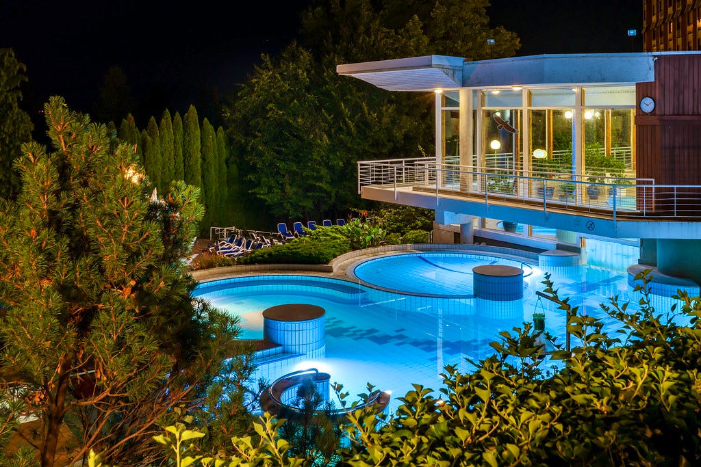 Nutzen Sie während Ihres Urlaubes im ungarischen Kurort Heviz den Wellness-Bereich des Hotels mit Innen- und Außenpools, Saunalandschaft, Whirlpool und Erlebnisduschen für ganzjährige Erholung.