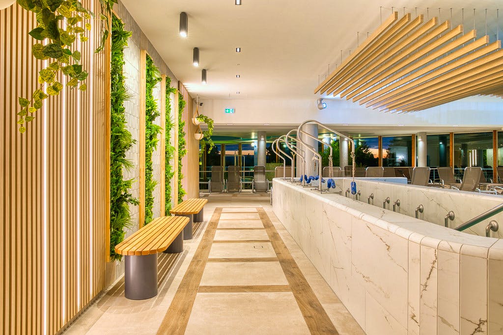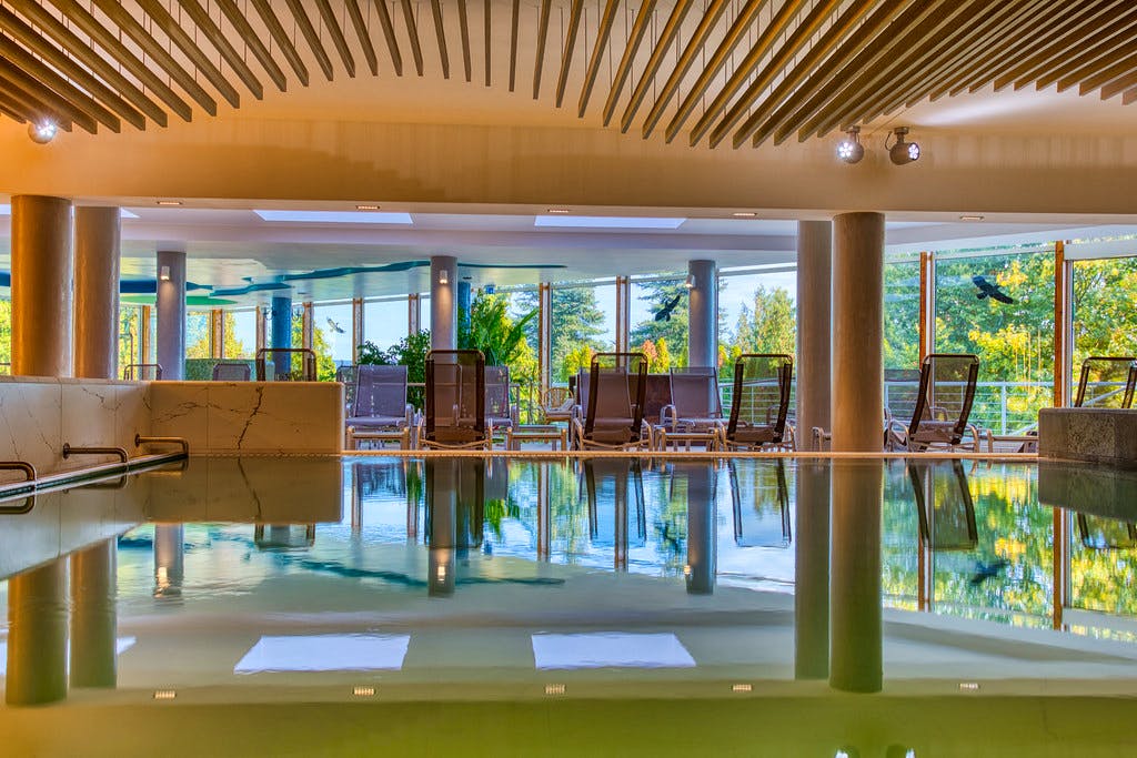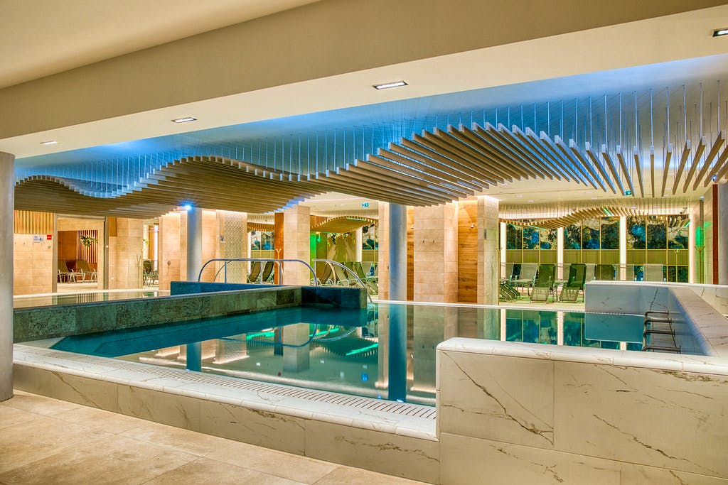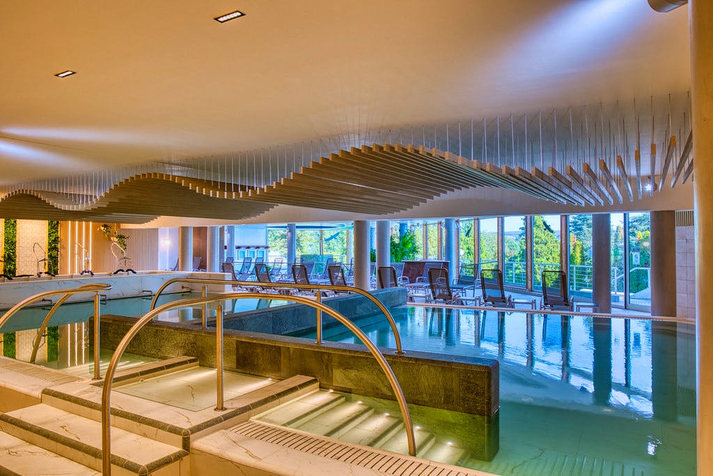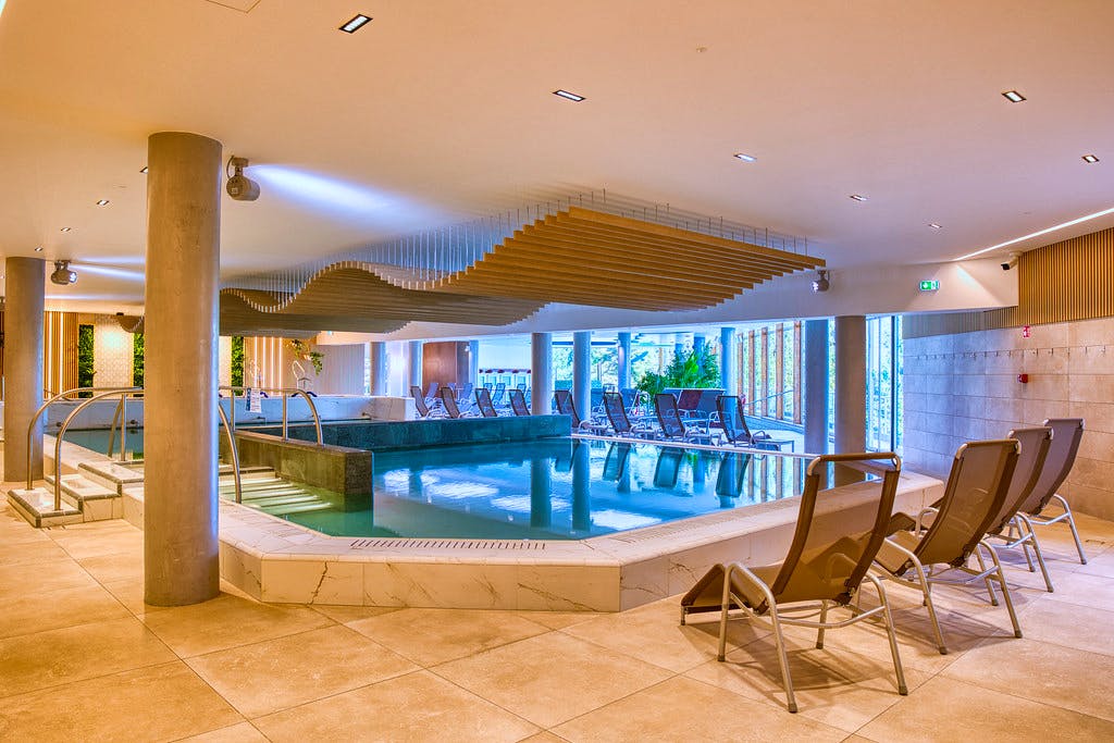 Das moderne Therapiezentrum Health Spa ist ausgestattet mit zwei Thermalhallenbecken.