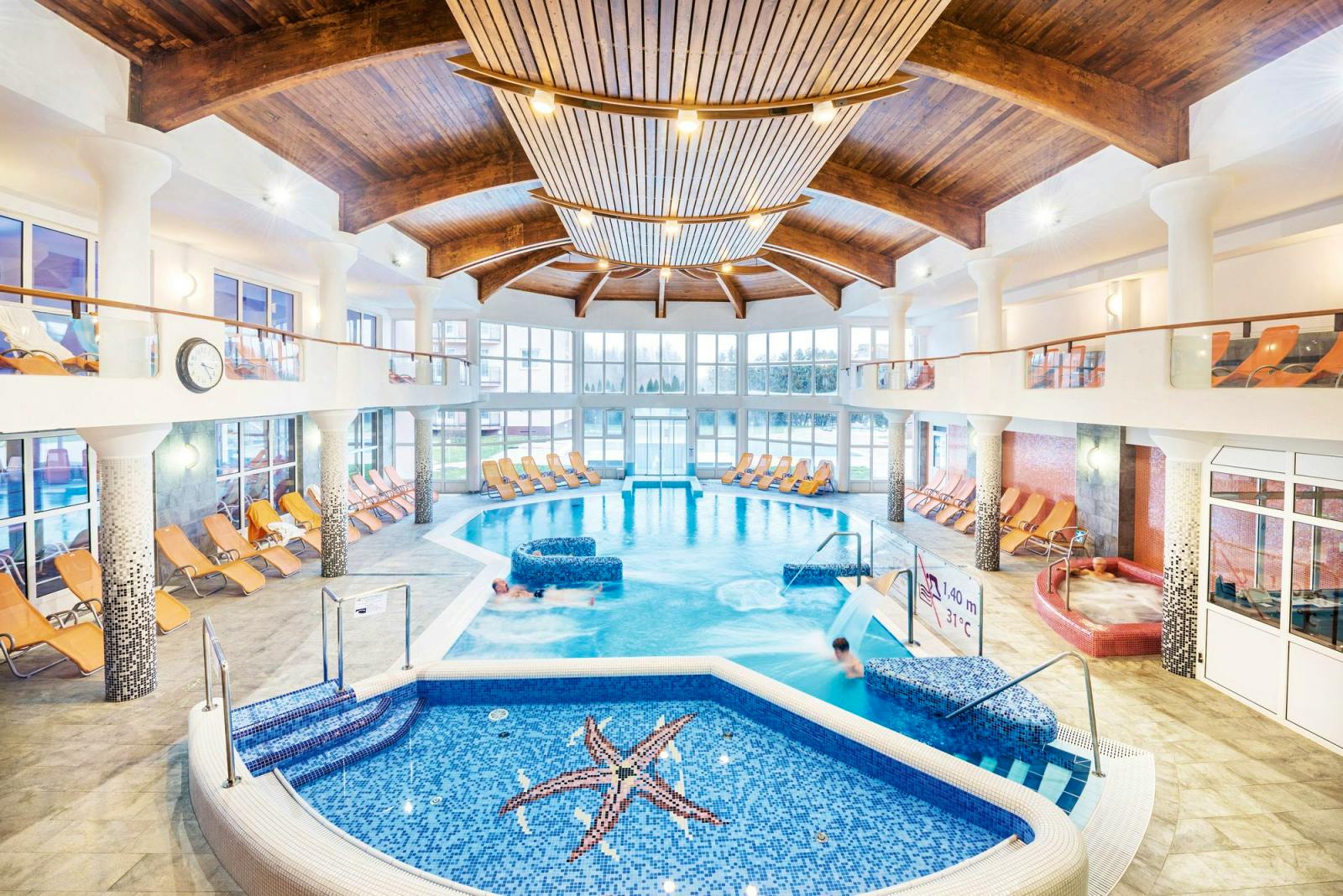 Das Hotel hat einen komplett renovierten großzügigen Wellness-Bereich - VITALIUM Medical Wellness Zentrum. Hier finden Sie ein Heilbecken mit Hévízer Heilwasser, Innenschwimmbecken, ein Erlebnisbad, Kinderplanschbecken, einen Whirlpool und Außenschwimmbecken. Seit Juni 2022 NEU - Sky Pool.
