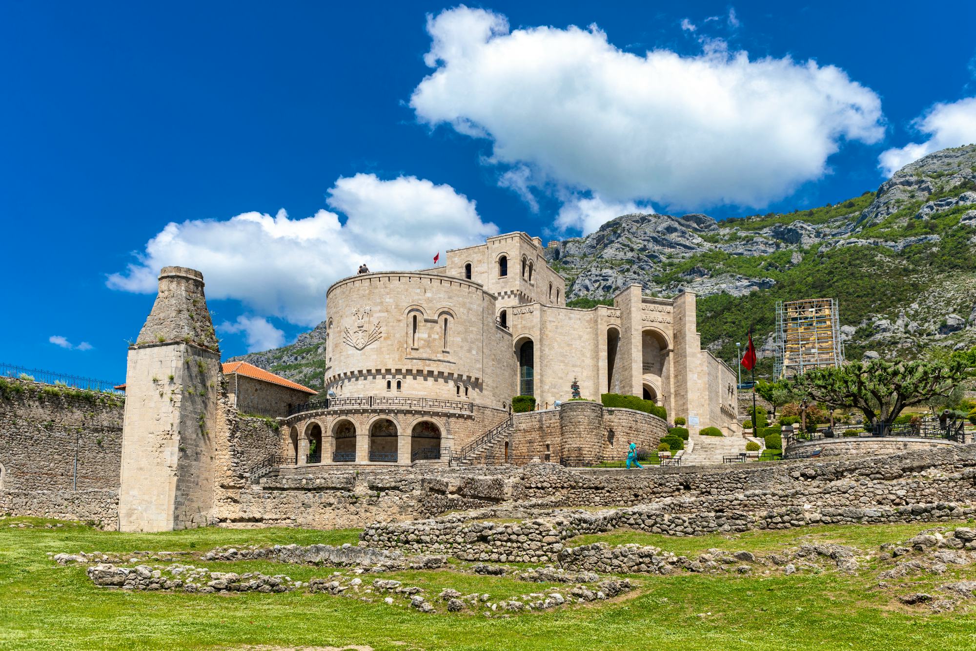 Bei der Besichtigung des Skanderbeg-Museums tauchen Sie tief in die Geschichte Albaniens ein. Das Museum ist innerhalb der Burg von Kruja untergebracht und dem Leben und Wirken des Nationalhelden gewidmet. Historische Exponate, Waffen, Gemälde und Dokumente vermitteln eindrucksvoll die Bedeutung Skanderbegs für die nationale Identität Albaniens. Von den Burgmauern aus genießen Sie zudem einen herrlichen Ausblick auf die umliegende Landschaft. Im Anschluss kehren Sie nach Tirana zurück und entdecken die albanische Hauptstadt individuell. Vorbei an farbenfrohen Wohnhäusern, die das Stadtbild prägen, sehen Sie den historischen Uhrenturm sowie die Ethem-Bey-Moschee, eines der bedeutendsten religiösen Bauwerke der Stadt. Eine weitere Möglichkeit der Freizeitgestaltung ist ein Besuch des Nationalmuseums, das mit seinen Ausstellungen einen umfassenden Überblick über die bewegte Geschichte Albaniens bietet.