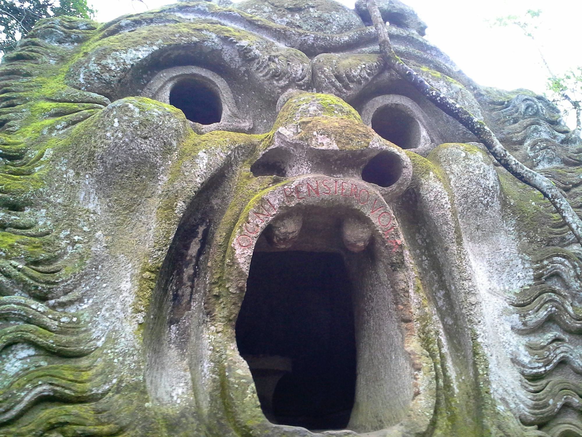 Auf dem Weg lohnt sich der Besuch des Bomarzo-Gartens der auch "der Park der Ungeheuer" genannt wird. Der Park der Ungeheuer hat seinen Namen von den aus Stein gehauenen grotesken Skulpturen, um die verschiedenste Sagen und Legenden erzählt werden. Besonders bekannt ist die zwischen Büschen und Bäumen versteckte schaurige Figur, die "das Höllenmaul" genannt wird, diese eignet sich besonders als Fotomotiv, weil der Schlund der Figur begehbar ist.