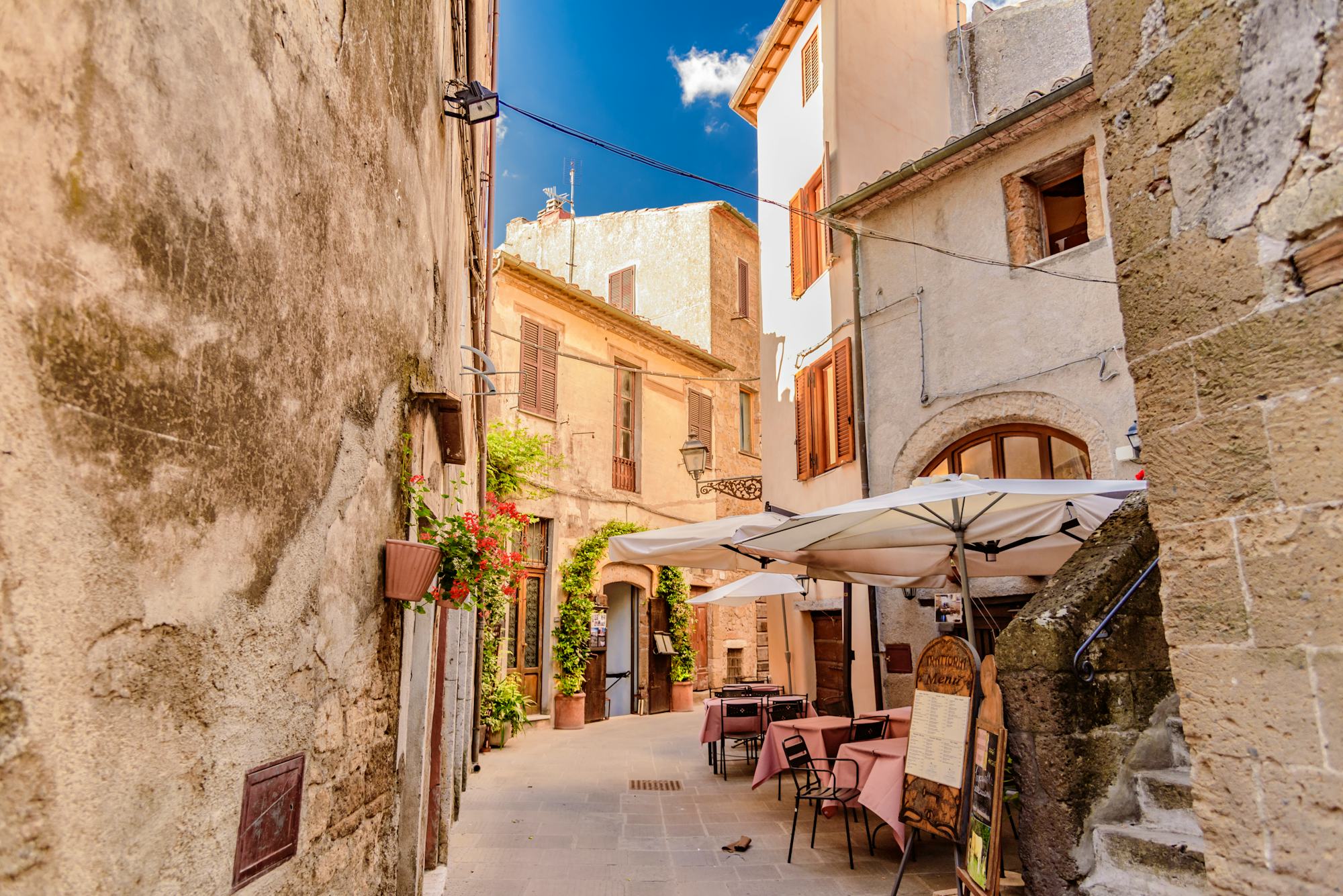Von Ihrer heutigen Unterkunft im Raum Saturnia fahren Sie in das mittelalterliche Dorf Pitigliano. Dieses Städtchen wird von drei Flüssen umgeben und liegt auf einem steilen Felsen aus Tuff-Stein in einer Höhe von ungefähr 300 Meter. So erhebt sich die gesamte rot-braune Stadt aus einem grünen Tal. Die Häuser der Stadt sind nah aneinander gebaut und liegen dicht an der Klippe des Tuff-Steins. Durch die dicken Stadtmauern war Pitigliano früher uneinnehmbar für Feinde.