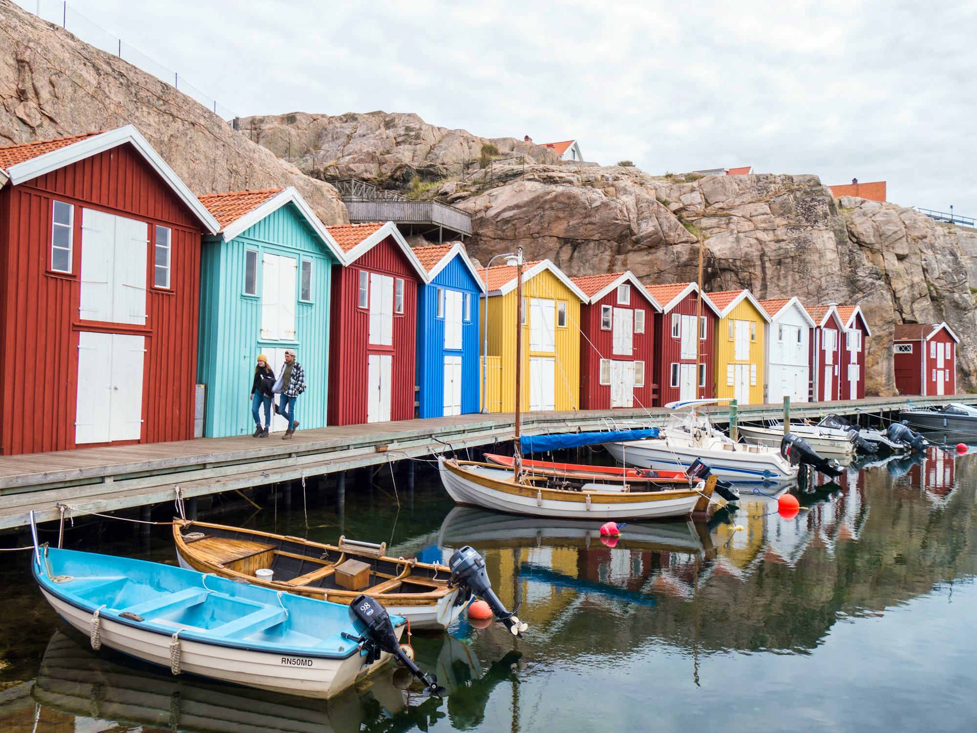 Die markanten, farbenfrohen Bootshäuser des lebhaften Fischerortes Smögen sind ein beliebtes Fotomotiv. Genießen Sie die frische Seeluft und etwas Zeit zum Bummeln.