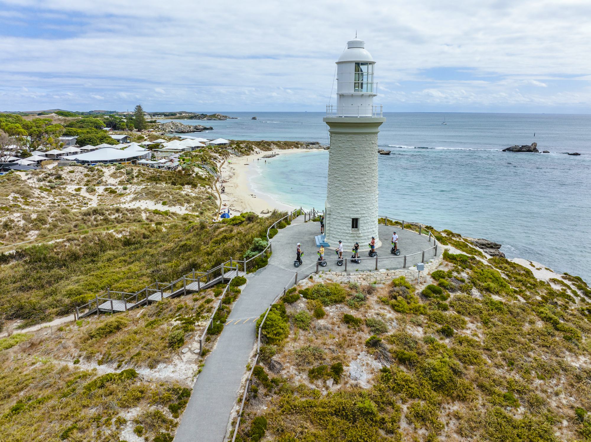 Da die Insel autofrei ist, können Sie Rottnest Island mit Ihrer Reisebegleitung nach einem gemeinsamen Spaziergang mit dem besten Fortbewegungsmittel, dem Fahrrad, erkunden. Die Räder haben wir für Sie gemietet. Ein Bus verkehrt aber auch auf der Insel und fährt abgeschiedene Strände und Surfreviere an, wenn Sie nicht mit dem Rad fahren möchten. Das nahe Thomson Bay bietet Einkaufsmöglichkeiten, Cafés und Restaurants, sodass jeder den Nachmittag nach eigenen Wünschen verbringen kann. Vom Wadjemup Lighthouse auf dem Wadjemup Hill haben Sie einen atemberaubenden Panoramablick über die vom kristallklaren saphirblauen Wasser des Indischen Ozeans umspülte Insel. Zum Mittag laden wir Sie zu einem typisch australischen Pie – einem herzhaft gefüllten Kuchen – ein. Später fahren Sie gemeinsam mit der Fähre zurück nach Fremantle.