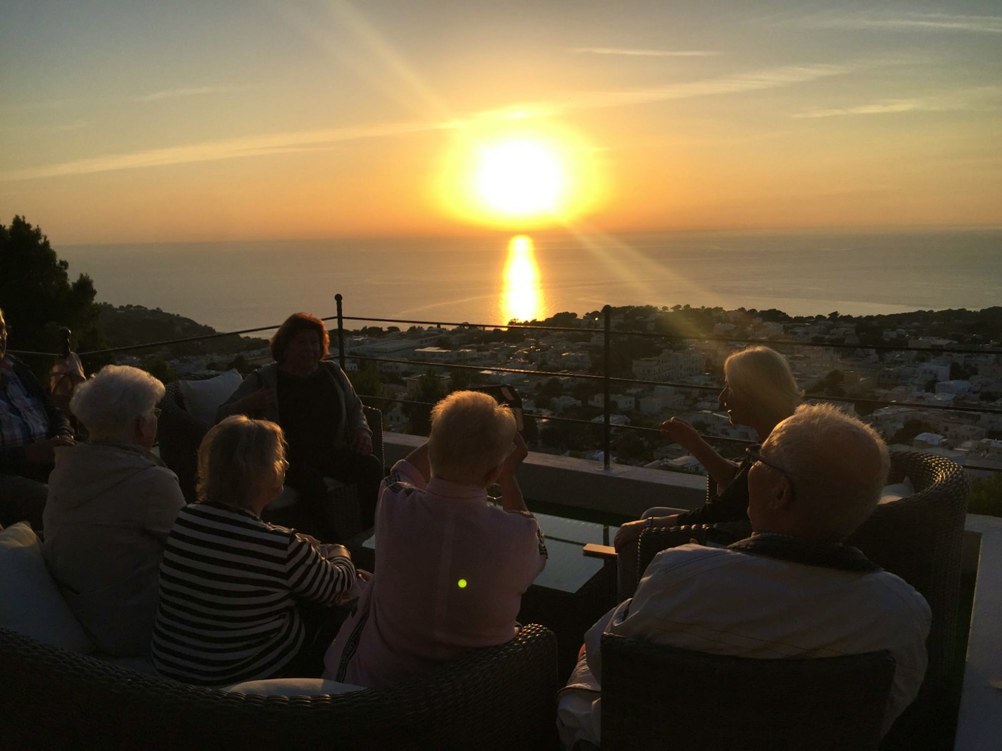 - Zum Abschluss Ihrer Reise werden Sie in Anacapri mit einem leckeren Abendessen bei einer capresischen Familie empfangen und genießen den Ausblick "wenn bei Capri die rote Sonne im Meer versinkt..."