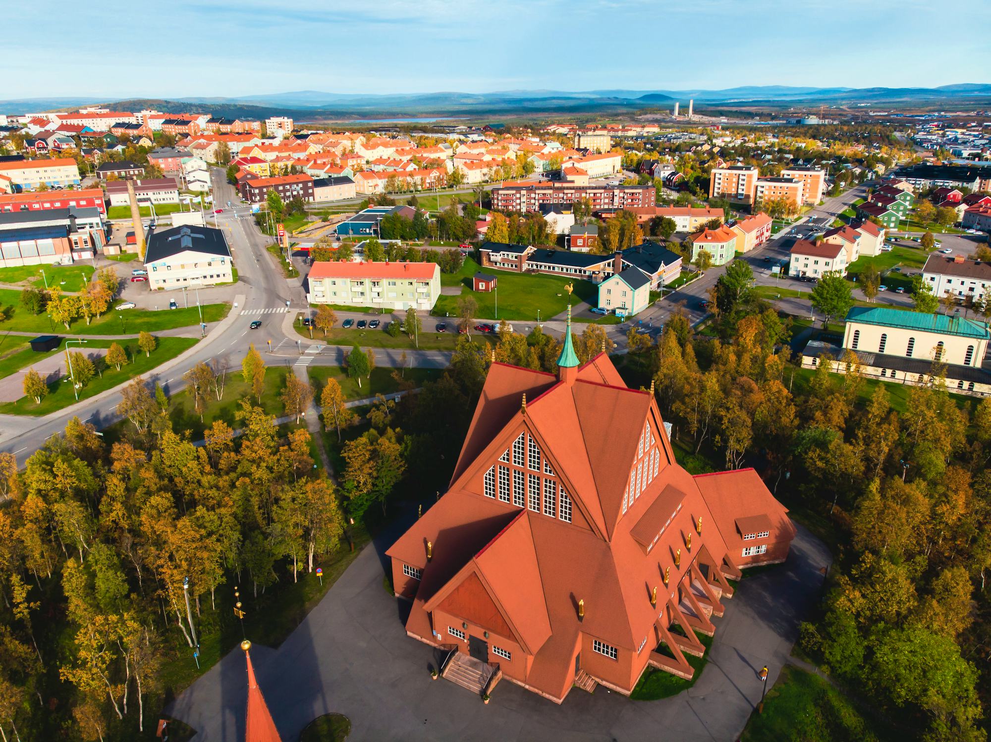 Weiter Richtung Norden, vorbei an Seen, Flüssen und stillen Mooren, öffnet sich die Taiga zu einer weitläufigen Landschaft. Sie erreichen die Weiten von Schwedisch-Lappland, Heimat der Stadt Kiruna, der flächenmäßig größten Gemeinde Europas – etwa so groß wie ganz Dänemark. Diese „Stadt in Bewegung“ ist nicht nur das „Klondike Europas“, sondern auch ein Ort, dessen Bewohner immer wieder umziehen: Die größte unterirdische Erzgrube der Welt frisst sich derzeit ins alte Stadtzentrum, während das neue Zentrum bereits bezogen ist. Hier trifft der raue, industrielle Charme auf eine Kulisse aus atemberaubender Natur. Von Ihrem Hotel, einst mitten im Geschehen und nun am Stadtrand, schweift der Blick über die alpine Bergwelt Lapplands, in der einige Gipfel über 2.000 Meter ragen.