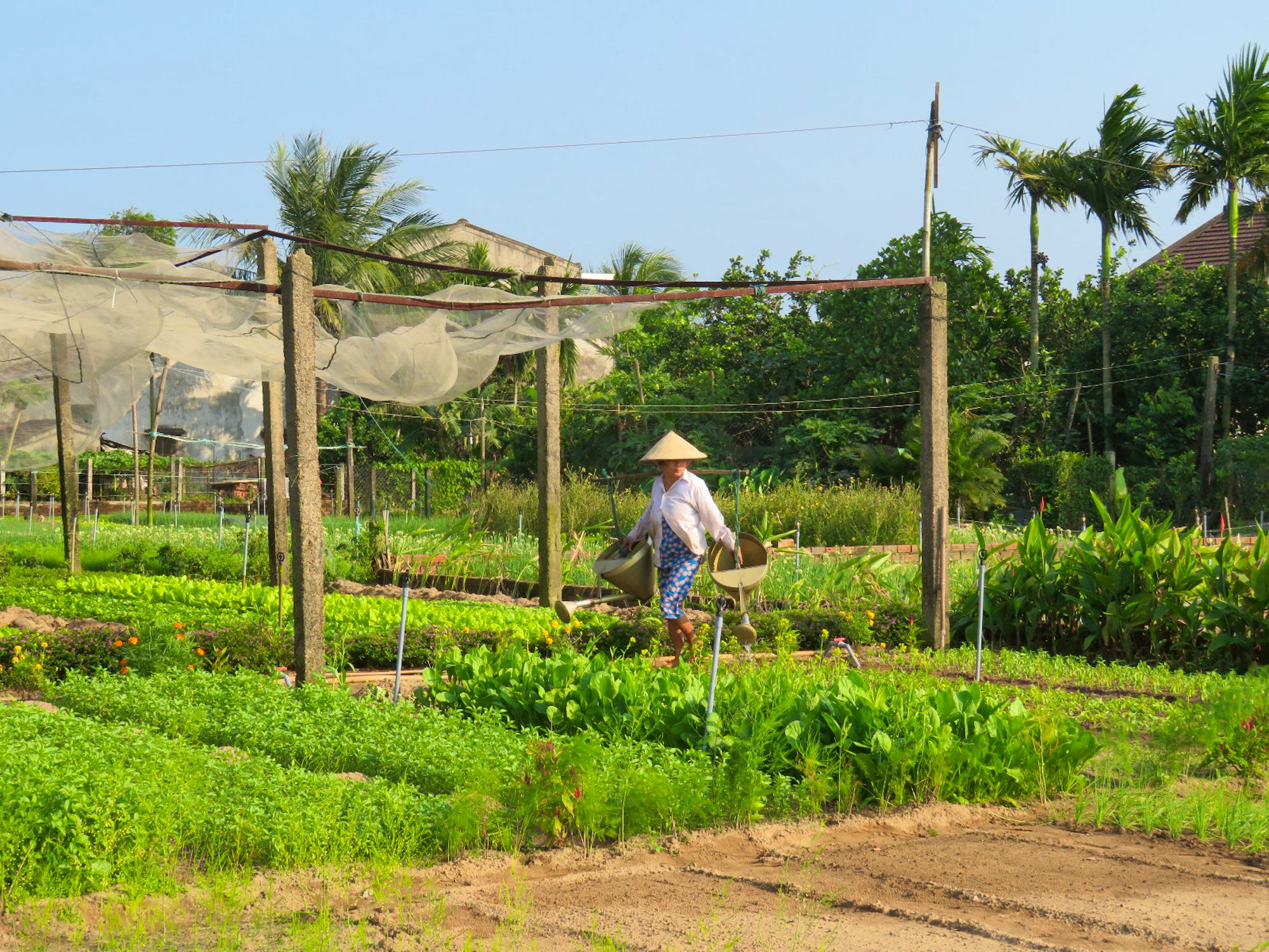 Heute beginnt für Sie ein neues Abenteuer – mit dem Fahrrad oder Elektrofahrzeug fahren Sie in das Dorf Thanh Dong. Von den Einheimischen werden Sie mit in den Gemüsegarten genommen, besichtigen diesen und ernten die Zutaten für Ihr heutiges Mittagessen. Hier werden Gemüse und Kräuter gänzlich ohne Chemikalien angepflanzt.