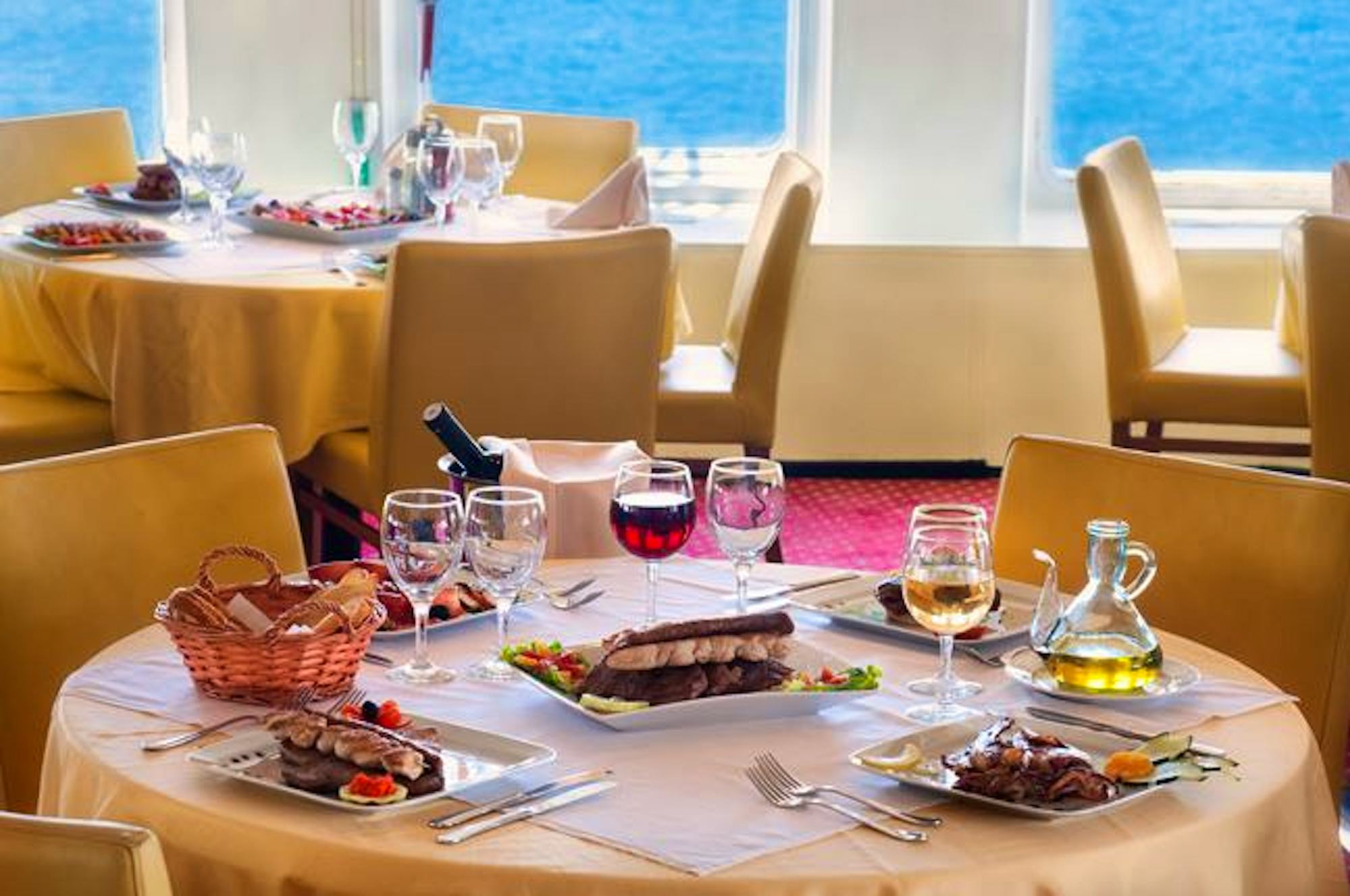 - Zugrundreise mit Vollpension mit kostenfreien ausgewählten Softgetränken, Bier, Hauswein, Tee und Kaffee und alle Landgangprogramme inklusive