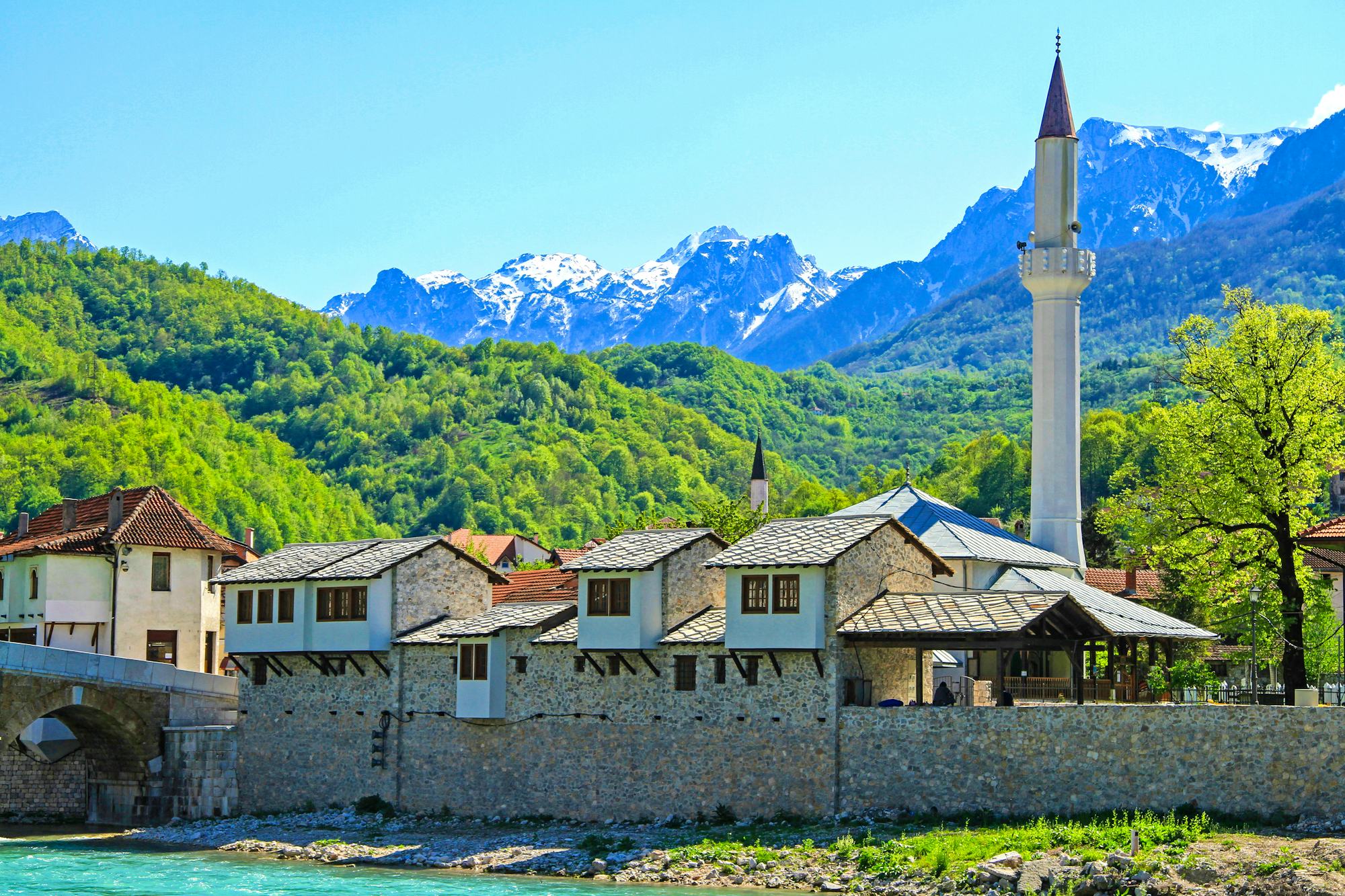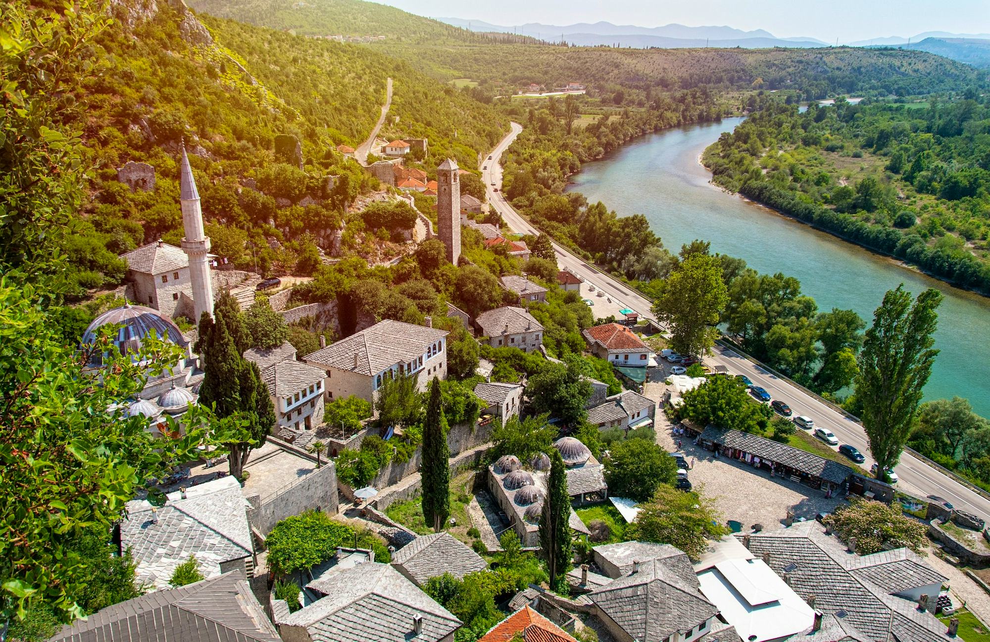 Sie lassen Sarajevo hinter sich und fahren über Jablanica zum Rama-See. Genießen Sie die Natur rund um diesen wunderschönen künstlichen See! Die Staumauer wurde im Jahr 1968 angelegt, dabei mussten einige Ortschaften weichen. Einige Überreste sind bei Niedrigwasser heute noch sichtbar. Gut erhalten geblieben ist die Halbinsel Šćit und das darauf befindliche Franziskanerkloster Rama- Šćit, welches sie im Anschluss besuchen werden. Anschließend besichtigen Sie das hier befindliche Franziskanerkloster. Die Klosterkirche ist die wichtigste und am besten dekorierte Kirche von Bosnien-Herzegowina, sie wurde 1881 erbaut. Das Kloster beherbergt eine hervorragende Kunstgalerie und Sie besuchen das hier eingerichtete, ethnografische Museum. Erfahren Sie mehr zum Leben in der Region Rama und bestaunen Sie die Ausstellungsstücke zum alten Handwerk, der Wirtschaft und des Lebens in der Region. Im Außenbereich des Klosters befindet sich ein Skulpturengarten; Blickfang ist das vier Meter hohe bronzene Kreuz des Bildhauers Mile Blažević. An die unruhige Geschichte des ausgehenden 20. Jahrhunderts erinnert das „Haus des Friedens“; diese religiöse Stätte ist den Kriegsopfern gewidmet. Im Anschluss geht Ihre Fahrt weiter in die Altstadt von Mostar, wo Sie Ihr Hotel beziehen. Mostar ist der Hauptort der Herzegowina, er ist politischer und kultureller Mittelpunkt der Region und liegt in einem weit ausladenden Talkessel. Die knapp 2.000 Meter hohe Berge des Velež- und Čabuljamassivs umgeben die Stadt.