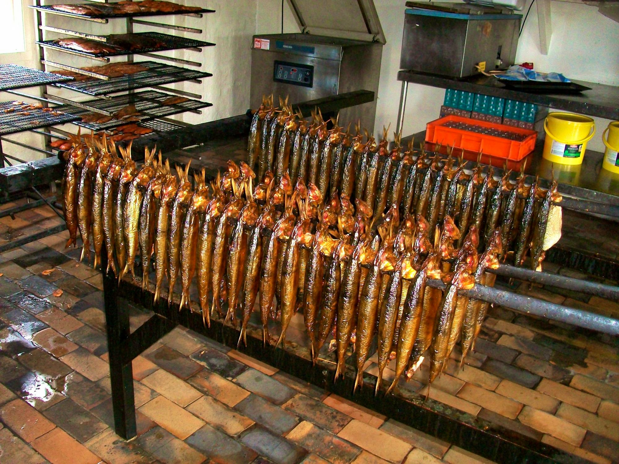 Anschließend folgen Sie der Westküste in Richtung Norden und erreichen den kleinen Fischerort Hasle, bekannt für seine traditionelle Räucherei. Hier wird täglich der „Goldene Bornholmer“ – eine bornholmtypische Spezialität – frisch zubereitet.
