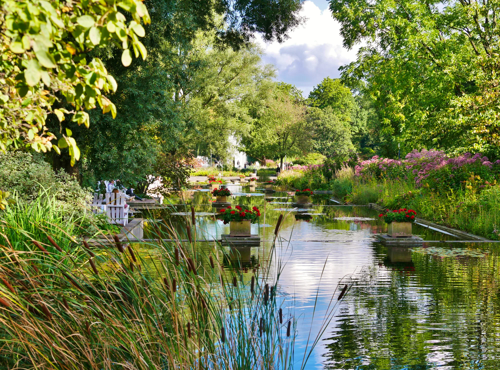 Sie fahren mit dem öffentlichen Personennahverkehr zur weitläufigen Parkanlage Planten un Blomen, mitten im Herzen Hamburgs, eingebettet zwischen Einkaufsstraßen, Congress-Centrum, Messegelände und dem lebendigen Stadtteil St. Pauli, gelegen. Auf rund 45 Hektar präsentiert sich der Park als grüne Oase der Erholung. Farbenprächtige Blumenrabatten und liebevoll gestaltete Pflanzflächen prägen das Bild und laden zum Verweilen ein. Großzügige Rasenflächen, idyllische Wasserläufe und kleine Seen sowie kunstvoll angelegte Themengärten schaffen eine harmonische Atmosphäre und bieten Raum für Ruhe und Entspannung. Gleichzeitig ist Planten un Blomen von allen Seiten zugänglich und eröffnet vielfältige Möglichkeiten zur Freizeitgestaltung und Unterhaltung. Ihr geführter Bummel durch die Parkanlage beginnt am Alten Botanischen Garten. Nach dem Abtragen der Befestigungswälle entstand entlang des ehemaligen Wallgrabens zunächst ein Englischer Landschaftsgarten, aus dem sich später der Botanische Garten entwickelte. Entlang des früheren Wallgrabens entdecken Sie heute die Bergpfade des Alpinums. Anschließend führt der Rundgang in die Anlagen, die durch die Gartenbauausstellungen der Jahre 1963 und 1973 geprägt wurden. In unmittelbarer Nähe liegt auch das ehemalige Untersuchungsgefängnis, dessen Geschichte während der NS-Zeit ein nachdenkliches Kapitel der Stadtgeschichte darstellt. Planten un Blomen wird nicht ohne Grund als „Hamburgs grüne Lunge“ bezeichnet. Die weitläufige, gepflegte Parkanlage leistet einen wichtigen Beitrag zur Lebensqualität der Stadt. Während des Rundgangs genießen Sie die landschaftliche Schönheit des Parks und setzen sich zugleich mit seiner bewegten Geschichte auseinander. Ursprünglich bestand Planten un Blomen aus drei getrennten Anlagen, die erst 1986 zu einem Gesamtpark zusammengeführt wurden.