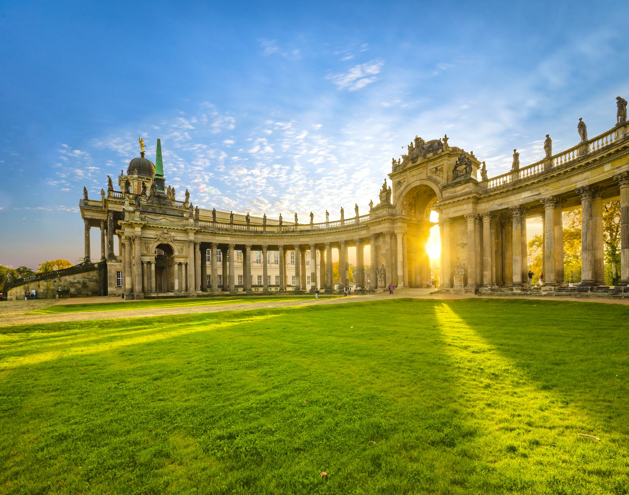 Das Neue Palais ist das letzte Schloss das Friedrich der Große im Park Sanssouci errichten ließ. Es diente als Ort für offizielle, repräsentative Anlässe und verfügt insgesamt über 200 Räume. Besonders sehenswert ist der Grottensaal, der Marmorsaal und der Konzertsaal.