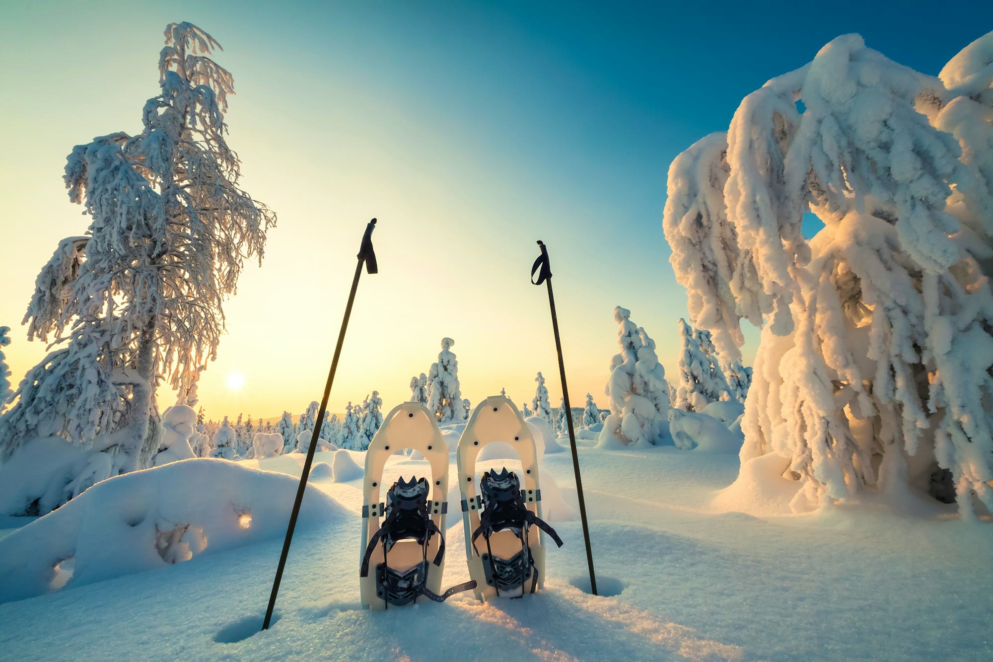 Am Vormittag unternehmen Sie eine kleine Ortsbegehung mit Ihrem Reiseleiter und verschaffen sich so schnell Orientierung in Iso-Syöte. Später erleben Sie die echte arktische Stimmung der nordischen Wälder und Seenlandschaft auf einer geführten Schneeschuhwanderung. Nach dem Anschnallen der Schneeschuhe und einer