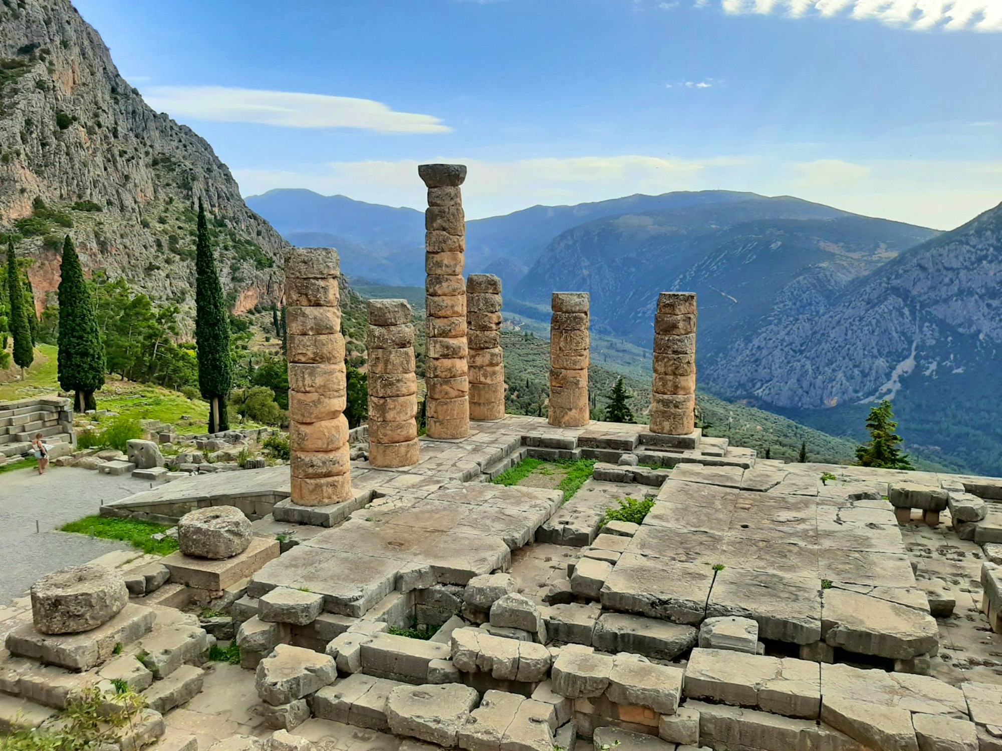 Ihre Rundreise führt Sie weiter gen Süden. Die archäologische Stätte von Delphi erstreckt sich als terrassenförmiges Gelände an den Ausläufern des Parnass. Hier bietet sich ein großartiger Blick hinunter zum Tal des Pleistos und zur Bucht von Itea am Golf von Korinth. Delphi galt in der Antike als Nabel der Welt, es ist das bekannteste Orakel des antiken Griechenlands und war dem Gott Apollo geweiht. Sie sehen den Apollo-Tempel, die heilige Straße, das Theater, das Schatzhaus und das Museum.
