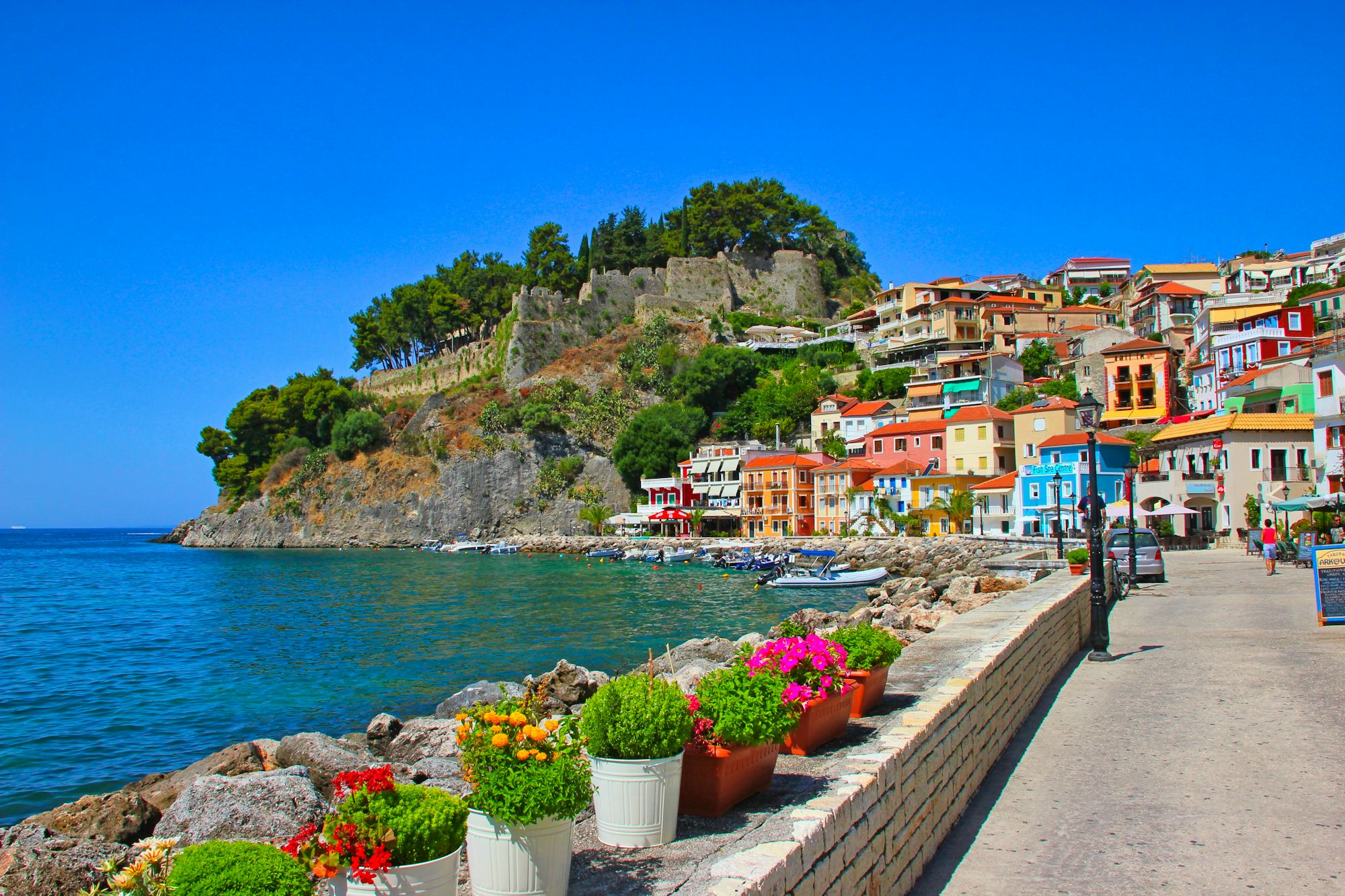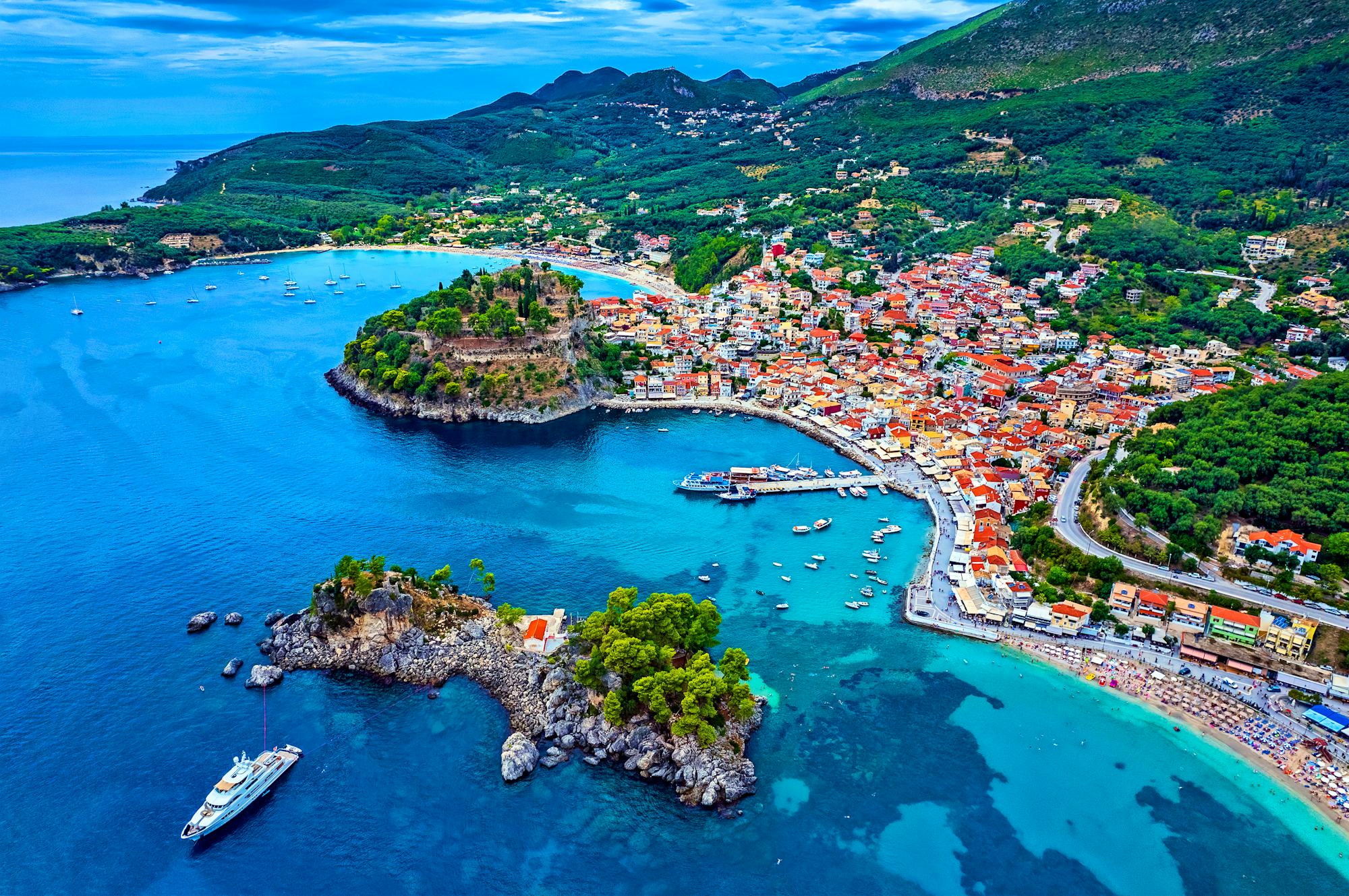 An einer traumhaften Bucht gelegen, besticht Parga durch seine pastellfarbenen Häuser, die sich amphitheaterartig an den Hang schmiegen. Hoch über der Stadt thront die imposante venezianische Festung aus dem 16. Jahrhundert, die einst über die Küste wachte und heute einen herrlichen Ausblick bietet.