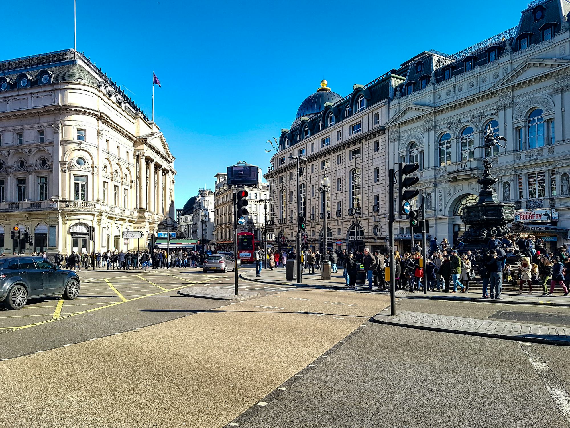 Flug nach London – Piccadilly Circus – Abendessen im Pub