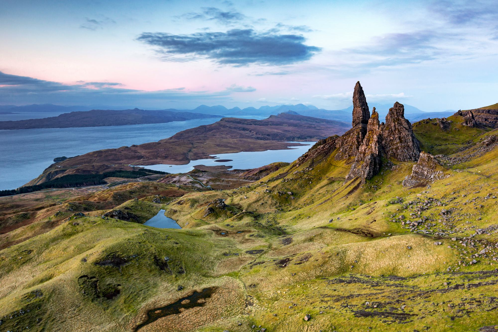 Am Vormittag unternehmen Sie eine Rundfahrt auf der Isle of Skye. Übersetzt nennt sie sich die "Insel des Nebels" und vereint alles, was die Highlands zu bieten haben. Geschmückt wird die Insel durch zahlreiche Burgen, lebendige Hafenstädte, eine bekannte Felsnadel und bizarre Gebirgslandschaften. Sie unternehmen einen Spaziergang durch die Inselhauptstadt Portree mit ihren bunten Häusschen und dem Hafen. Im Anschluss fahren Sie zu den Felsformationen des Old Man of Storr und Kilt Rock, wo Sie die raue Schönheit der Landschaft bei einer kleinen Wanderung genießen können.