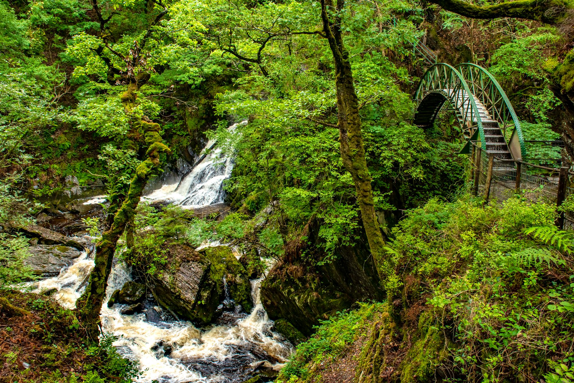 Zum Abschluss des Tages besuchen Sie die berühmten Devil’s Bridge Falls. Diese eindrucksvollen Wasserfälle ziehen seit dem 18. Jahrhundert Reisende in ihren Bann – auch den Dichter William Wordsworth. Einer Legende nach soll die älteste Brücke hier sogar vom Teufel selbst errichtet worden sein, da der Flussübergang für gewöhnliche Menschen als unmöglich galt.
