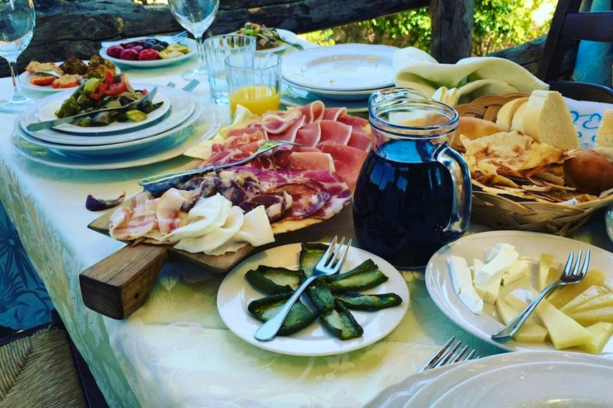 - 1 serviertes Mittagessen auf einem typisch sardischen Bauernhof bei Aggius mit landestypischen Spezialitäten und Getränken