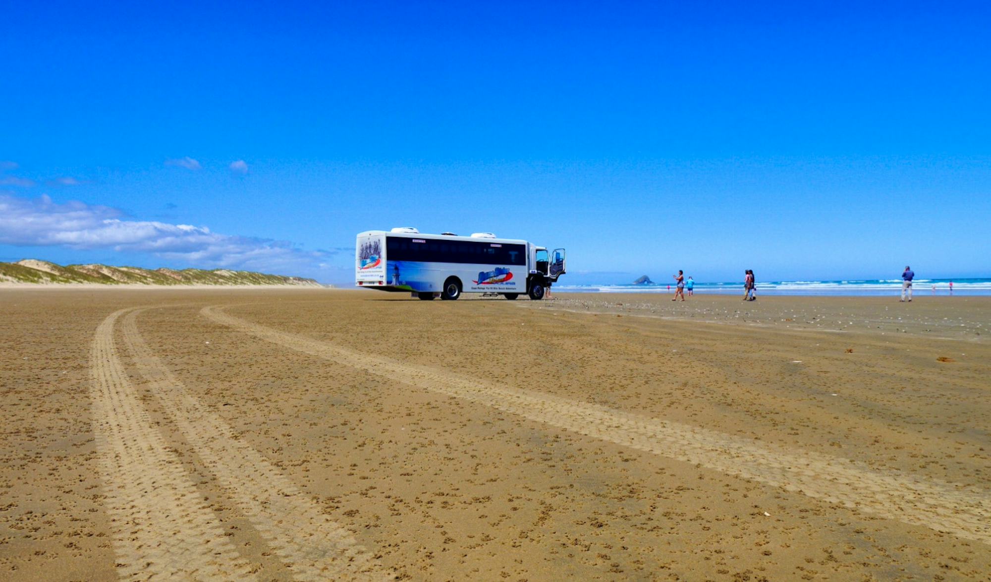 Oder Sie nehmen an einem Ganztagesausflug zum Cape Reinga und Ninety Mile Beach teil (Zusatzkosten: ca. 175 NZD / ca. 100 € inkl. Mittagssnack). Es erwartet Sie ein goldgelber Strand, riesige Dünen und unendliche Weiten. Safariartig fahren Sie den Sandstrand entlang. Am Horizont vermischt sich das Wasser des Südpazifiks und der Tasman-See in einem beeindruckenden Farbenspiel. Auf der Klippe thront der berühmte Leuchtturm, hier haben Sie den äußersten Norden Neuseelands erreicht - das von Maori-Mythen umwobene Cape Reinga.