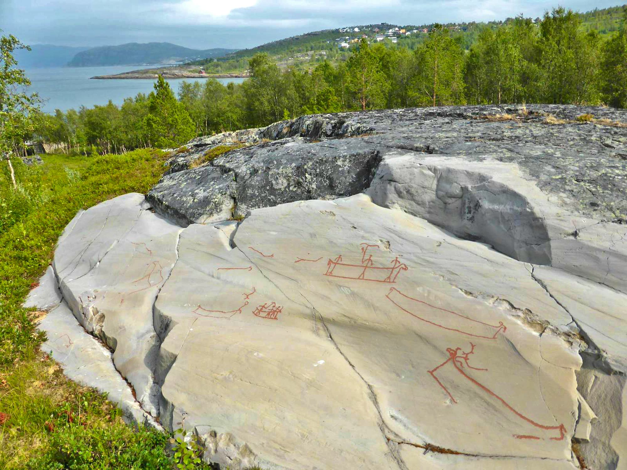 Sie verlassen die Insel Mageroya entlang des Porsangerfjordes nach Alta, wo Sie die berühmten Felszeichnungen von Hjemmeluft bestaunen. Die aus der Steinzeit stammenden Funde gehören zum Welterbe der UNESCO.