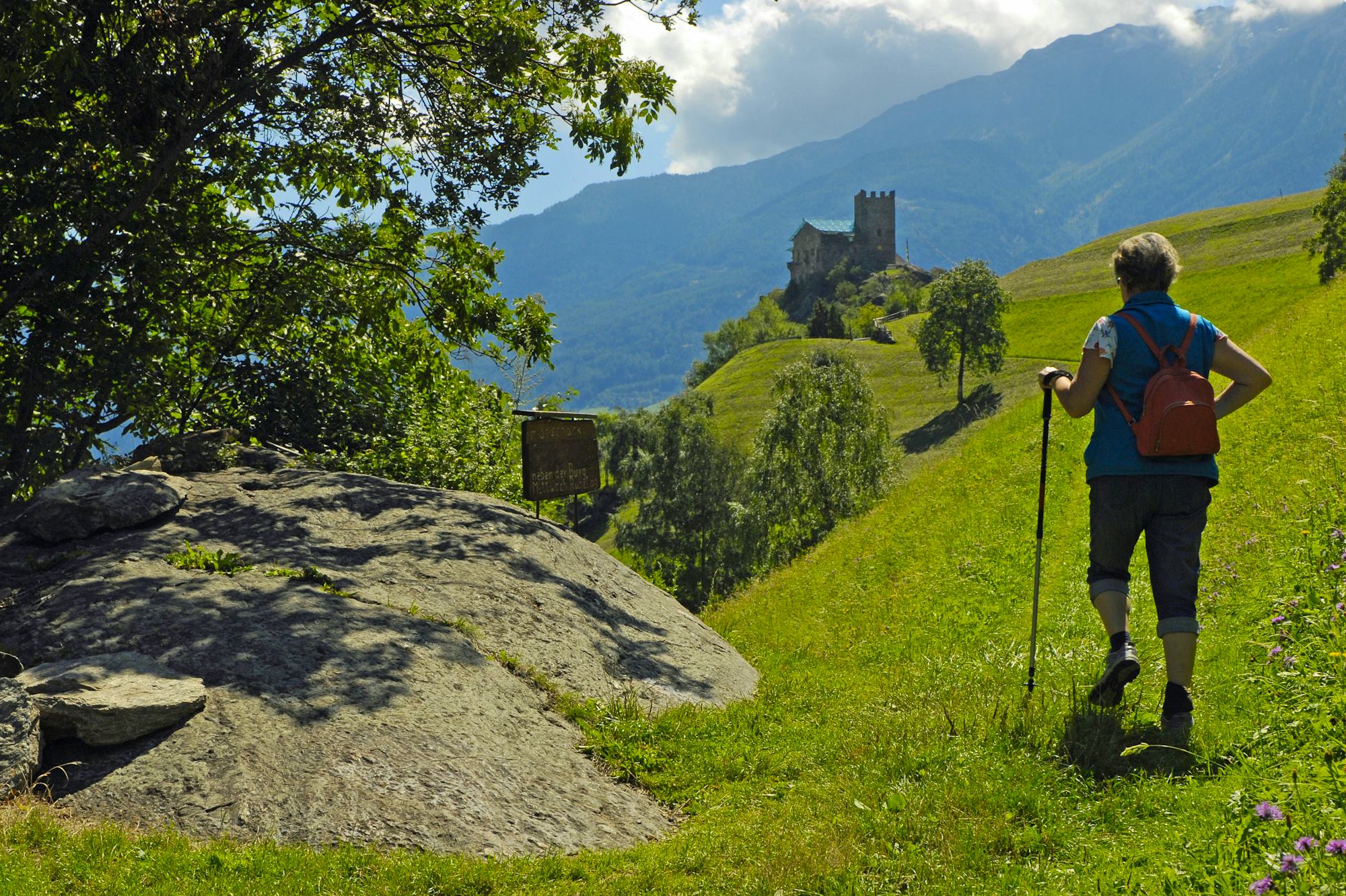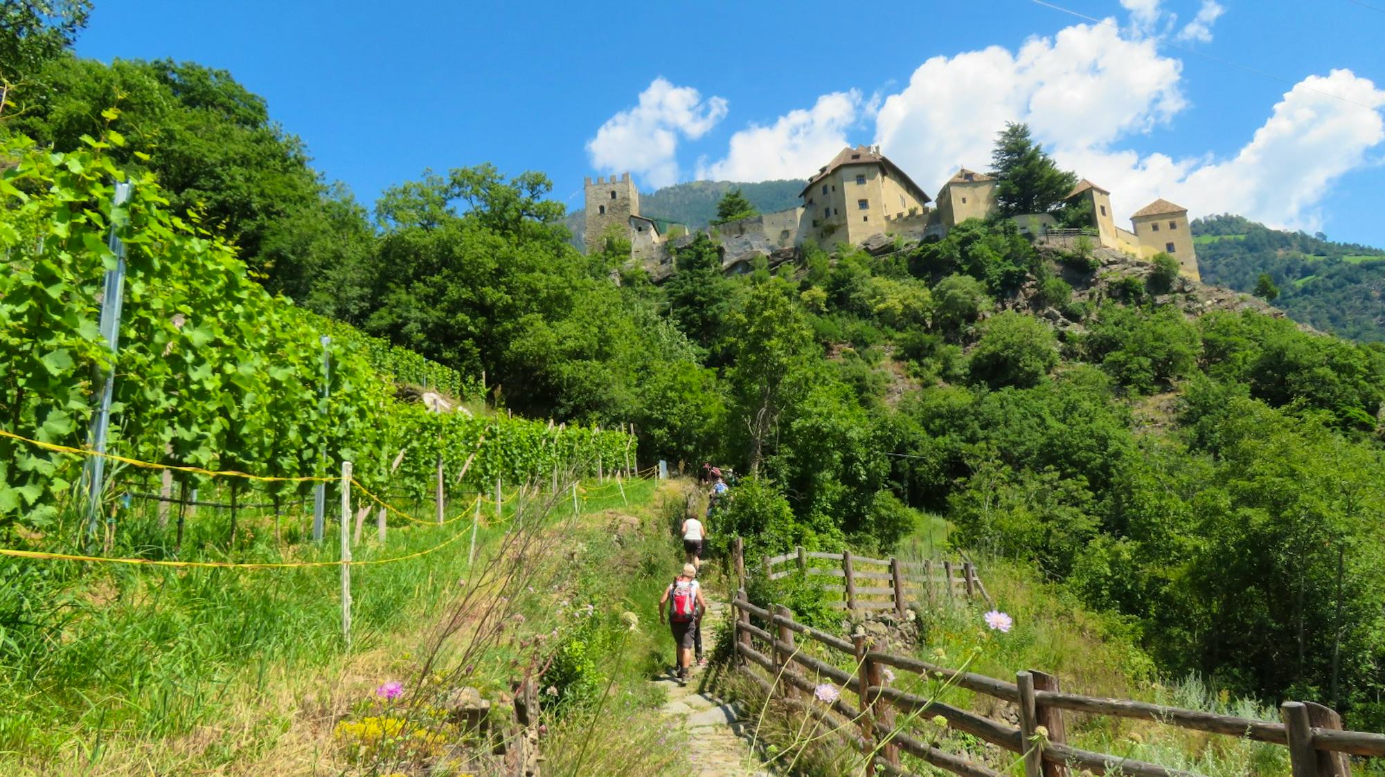 - auf einem Waalweg hinauf zum Schloss Juval, dem Privatschloss von Reinhold Messner