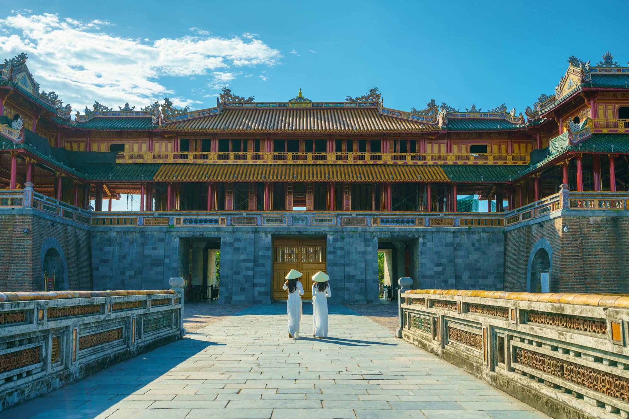 Am Nachmittag erreichen Sie die ehemalige Kaiserstadt Hue, die bis 1945 die Hauptstadt Vietnams war. Hier besichtigen Sie die mächtige Kaiserliche Zitadelle, die von der UNESCO als Weltkulturerbe geschützt wird. Sie diente über viele Generationen hinweg als politisches, kulturelles und religiöses Zentrum der Nguyen-Dynastie. Anschließend tauchen Sie auf dem lebhaften Dong-Ba-Markt in das bunte Treiben ein, wo Händler frische Waren, exotische Gewürze und regionale Spezialitäten anbieten.