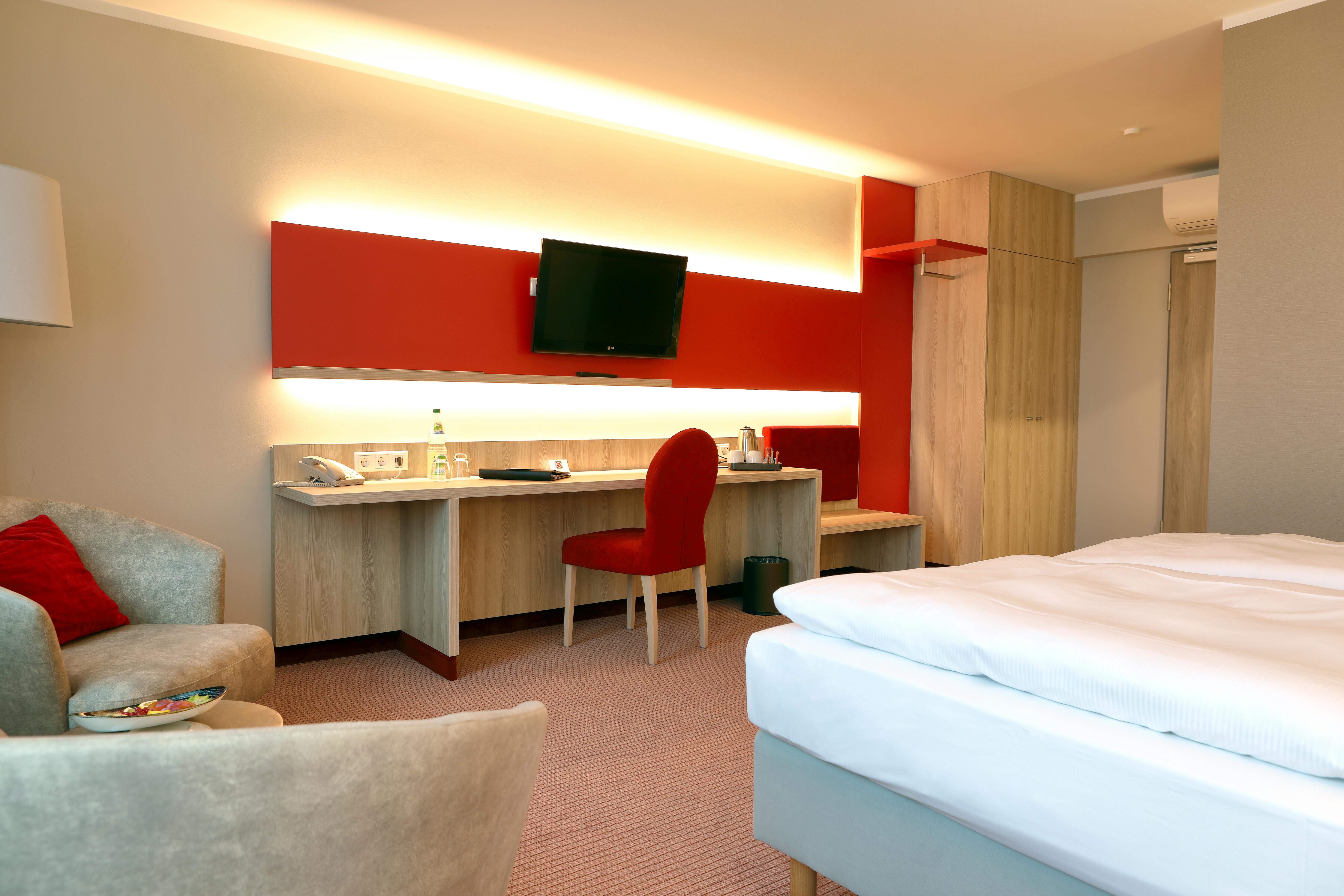 Die 98 gemütlich eingerichteten Zimmer bieten einen hohen Standard und sind mit modernen Annehmlichkeiten ausgestattet. Alle Zimmer verfügen über ein komfortables Bett, SAT-TV, kostenfreies WLAN, Zubereitungsmöglichkeit für Kaffee und Tee, Minibar sowie ein modernes Bad mit Dusche oder Badewanne.