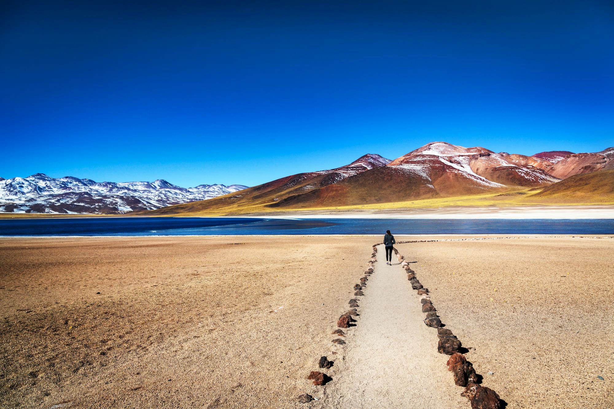 Nach Ihrer ersten Nacht in der Oasenstadt San Pedro de Atacama unternehmen Sie einen ersten Ausflug in die Wüste. Ihr erstes Ziel sind die Lagunen Miscanti und Miniques im Hochland der Anden. Dabei reisen Sie gemütlich auf eine Höhe von 4.200 Metern und stoppen unterwegs immer wieder für Fotos, aber auch, um sich langsam an die Höhe zu gewöhnen. Bei den Lagunen angekommen, unternehmen Sie einen kleinen Rundgang zwischen den beiden Salzseen, die malerisch vor den gleichnamigen Vulkanen gelegen sind. Mit etwas Glück erblicken Sie die ersten Flamingos. Bevor Sie zu Ihrem Hotel zurückkehren, besuchen Sie den Salar de Atacama, den weltweit drittgrößten Salzsee. Sie spazieren entlang der Salzpfannen der Laguna Chaxa und sollten dabei immer Ihr Fernglas zum Beobachten von Flamingos, die ihr ganzjährig leben, bereithalten. Zurück in San Pedro de Atacama können Sie nach Rückkehr noch einen gemeinsamen Spaziergang mit Ihrer Eberhardt-Reisebegleitung entlang der Dorf-Hauptstraße unternehmen.