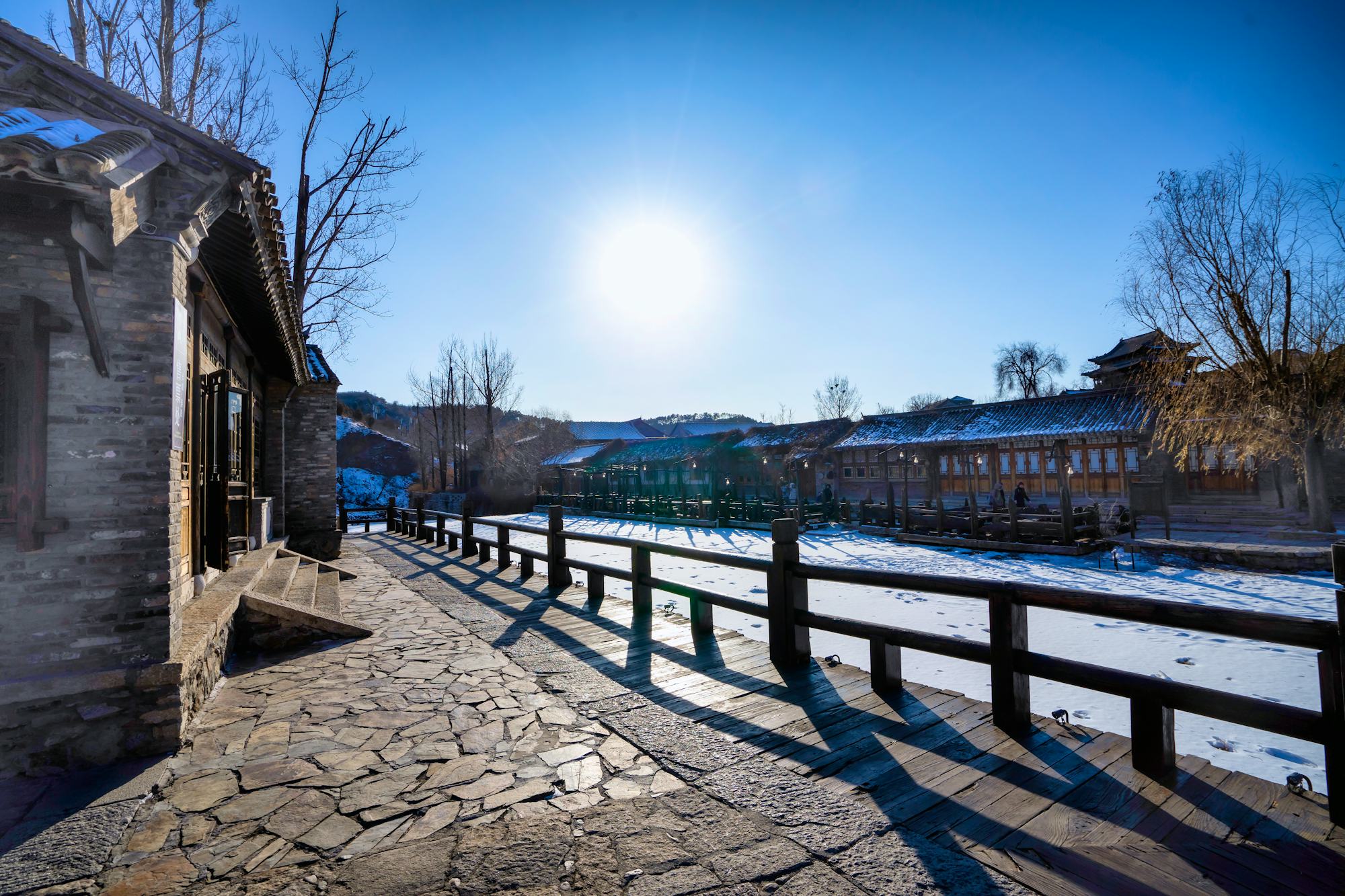 Fahrt zum Wasserdorf Gubei (ca. 2–2,5 Stunden). Das am Wasser erbaute Dorf beeindruckt mit kanalgesäumten Gassen und traditioneller Architektur aus der Ming- und Qing-Dynastie, deren Anordnung den Prinzipien des Feng Shui folgt. Oberhalb liegt der gut erhaltene Mauerabschnitt Simatai der Großen Mauer, der einen weiten Panoramablick bietet und nachts beleuchtet ist. Am Nachmittag besuchen Sie das Wasserdorf, unter anderem eine Färberei und eine Brennerei mit Verkostung lokaler Spirituosen, und erleben kulturelle Darbietungen wie Musik, Tanz und Kampfkünste. In der Dämmerung genießen Sie den Sonnenuntergang auf der Mauer sowie den Blick auf das beleuchtete Wasserdorf vom Yuantong-Pagoden-Tempel.