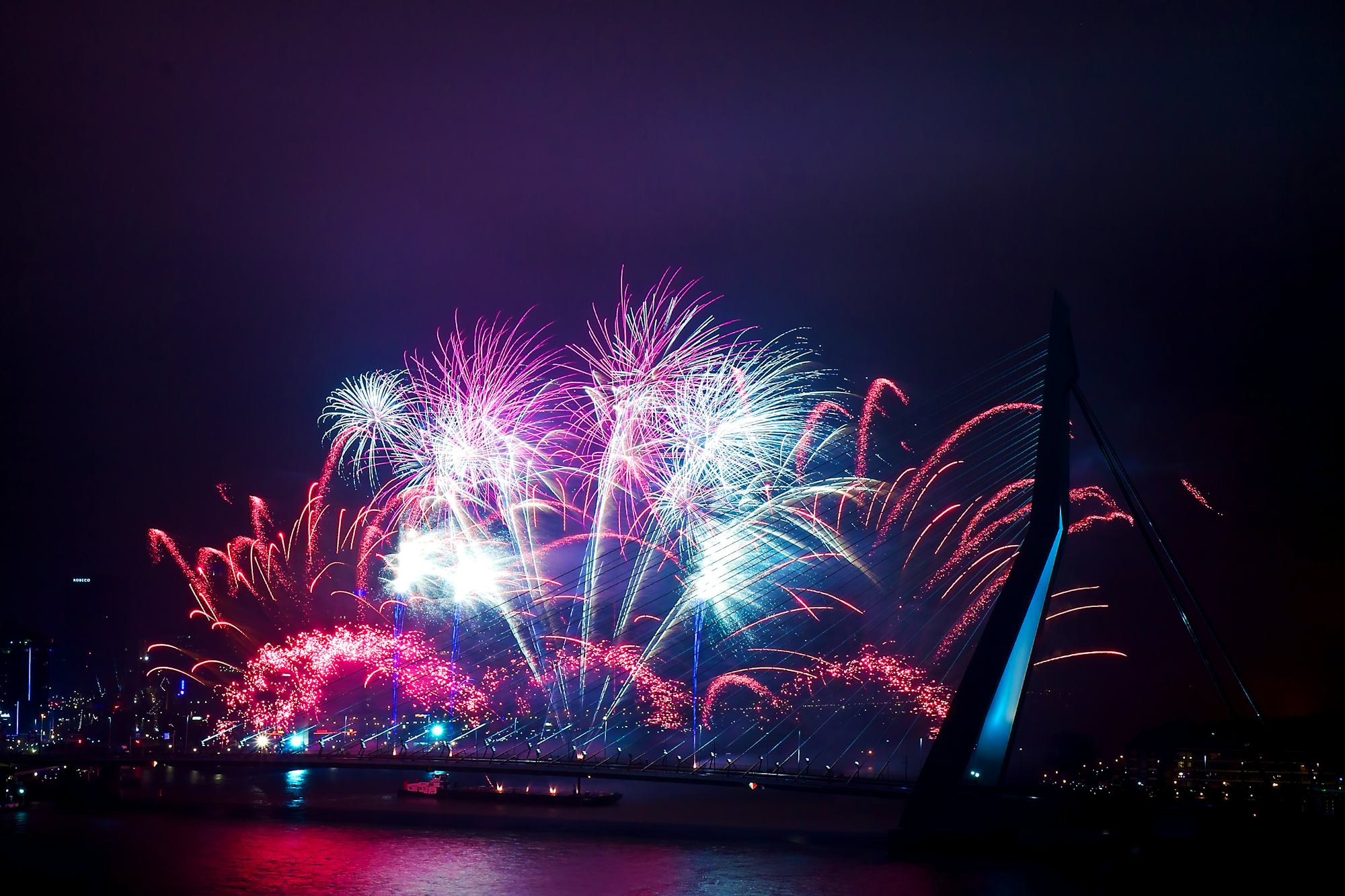 - Bei einer Hafenrundfahrt mit stimmungsvoller Musik und Live-Entertainment schippern Sie ins Neue Jahr und erleben das längste Feuerwerk der Niederlande vom Schiff aus. Genießen Sie bei Ihrer Silvesterfeier den wundervollen Blick auf die Erasmusbrücke und auf die Skyline Rotterdams!