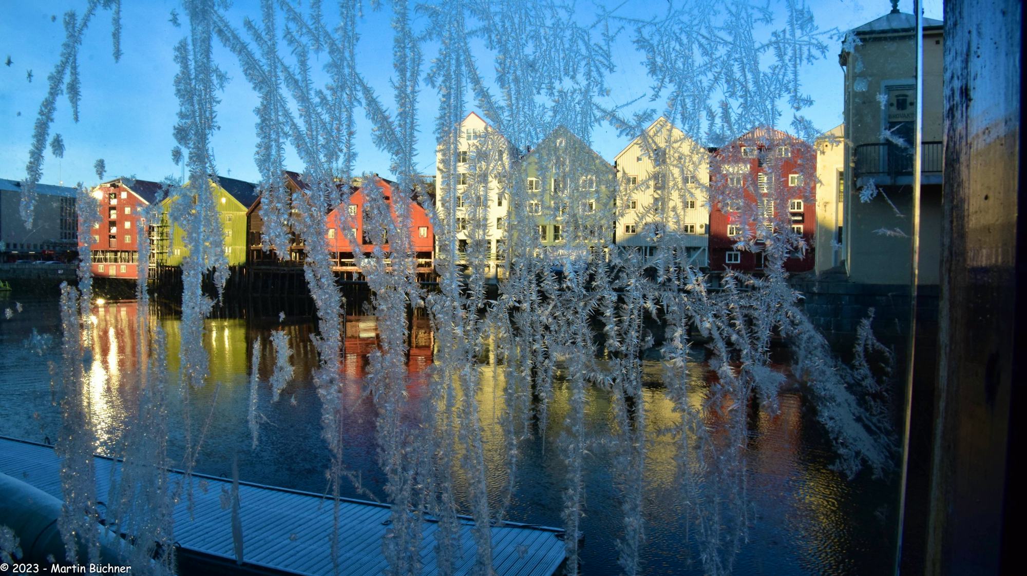 Früh am Morgen, wenn das erste Morgenlicht die Stadt in ein goldenes Leuchten taucht, erreichen Sie Trondheim. Die sanfte Dämmerung und die ruhige Atmosphäre dieser frühen Stunde sind perfekt für einen kleinen Morgenspaziergang.