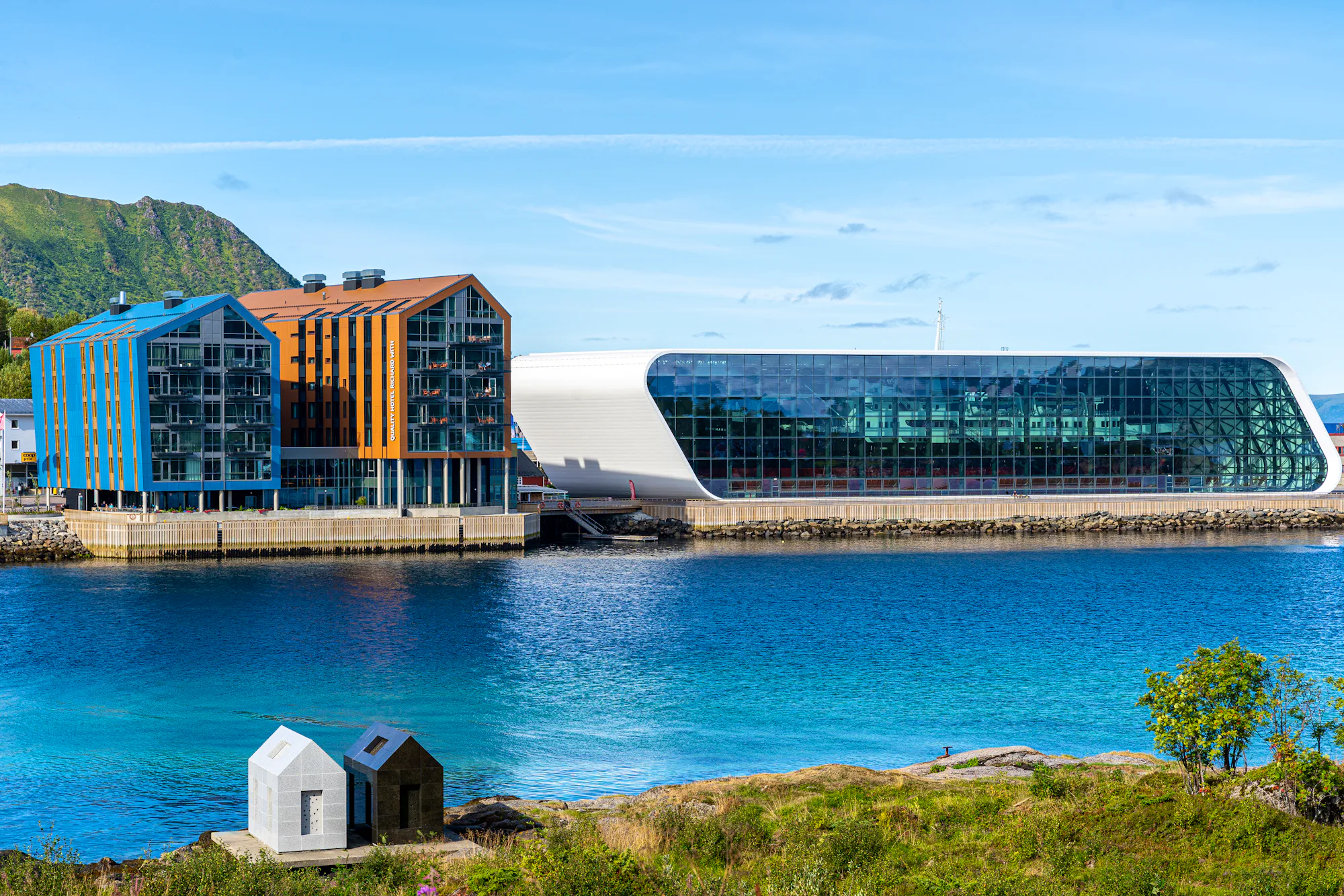 Eingebettet in die wunderschöne Landschaft Norwegens - zwischen zahlreichen Bergen und Fjorden - befindet sich das Sortland Hotel.