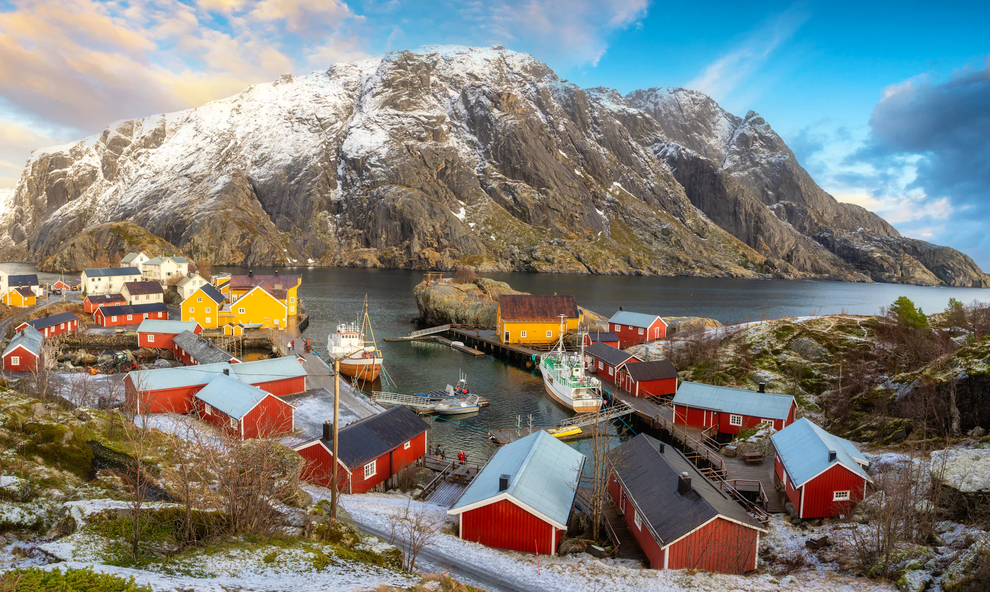 Mit Nusfjord erwartet Sie eines der ältesten und besterhaltenen Fischerdörfer Norwegens. Zahlreiche traditionelle Hütten und historische Gebäude sind hier bis heute erhalten geblieben und vermitteln einen authentischen Eindruck vom Leben vergangener Zeiten, als der Fischfang eine noch größere Bedeutung für die Region hatte. Bei Ihrem Besuch können Sie die besondere Atmosphäre dieses charmanten Ortes auf sich wirken lassen und in die Geschichte der Lofoten eintauchen.