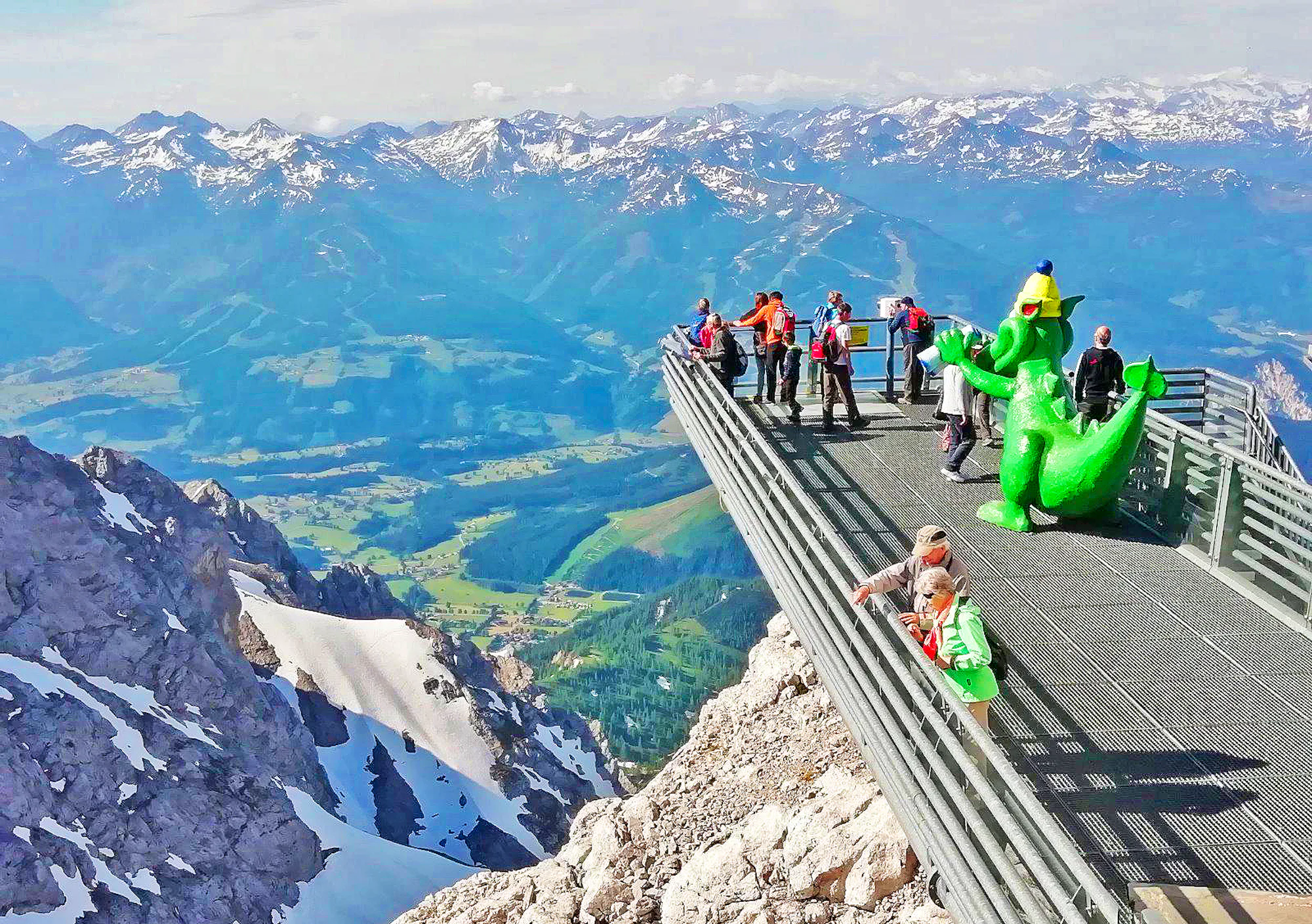 - Aussichtsreiche Perspektiven am 2700 Meter hohen DACHSTEIN-GLETSCHER entdecken, mit zahlreichen Aussichtsplattformen & Foto-Hotspots: dem Dachstein Gletscherrestaurant, der Dachstein-Himmelsleiter, der Dachstein-Hängebrücke mit der Treppe ins Nichts oder dem Sky Walk.