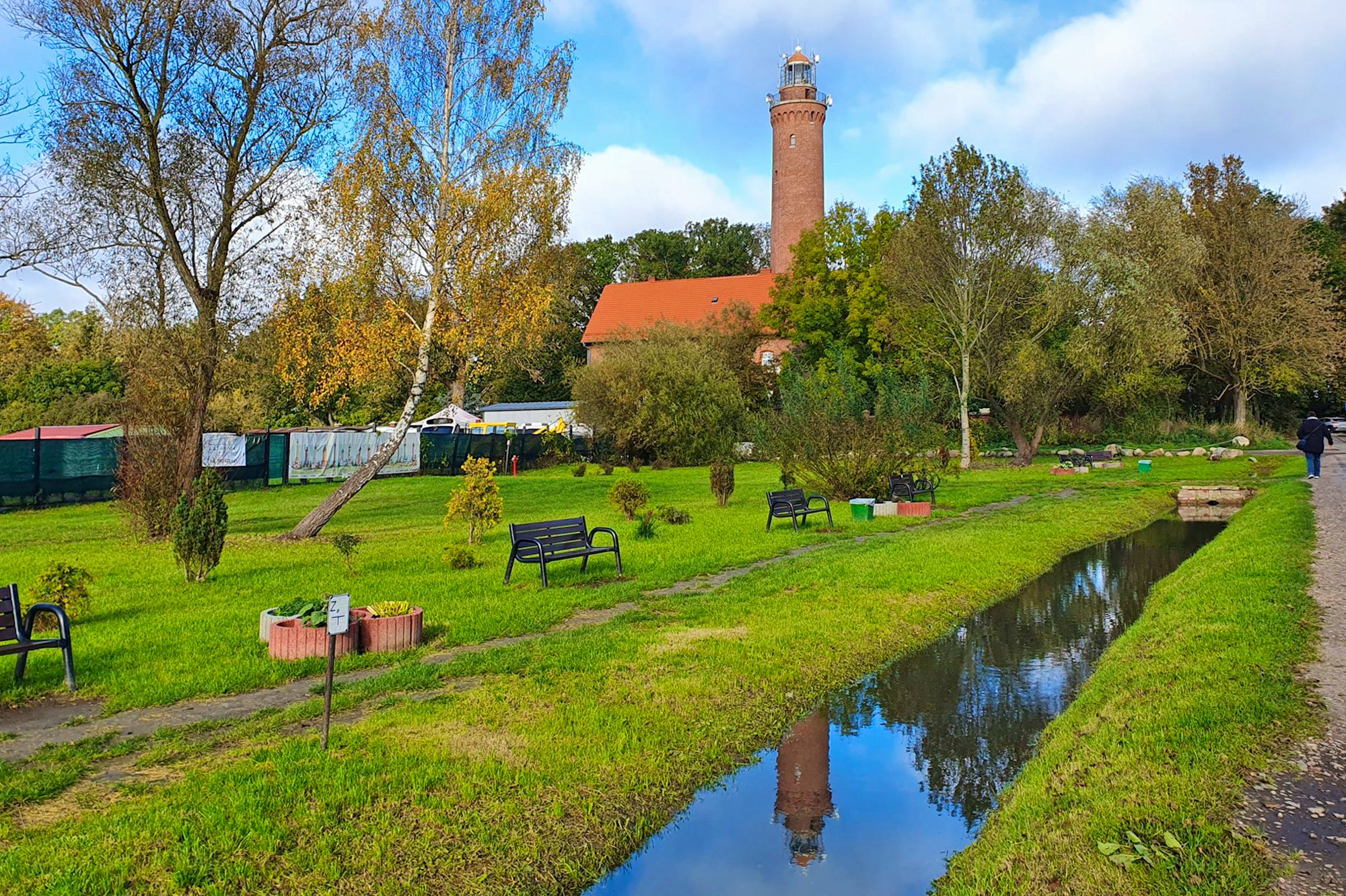 Funkenhagen (Gaski) ist eines der Erholungsgebiete der Ostsee, welches heute durch Abtragung aber auch ein sehr gefährdetes Stück Ostseeküste ist. Sie fahren vorbei am Leuchtturm, von dem man eine schöne Panoramaaussicht auf das Meer und die Ostsee genießen kann. Der Leuchtturm steht circa 100 Meter vom Strand entfernt und ist in einem mit hoher Ziegelmauer umgebenen Gehöft.