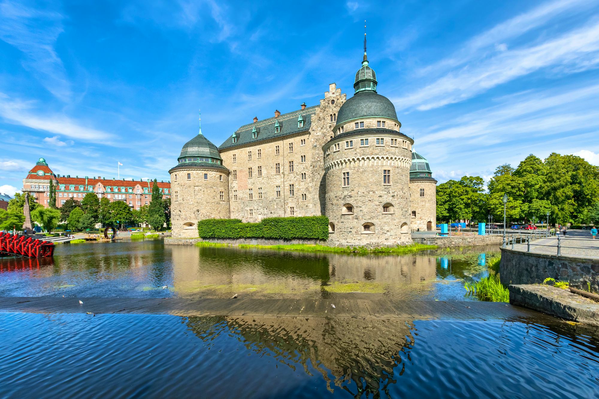 Ihr Tagesausflug nach Örebro beginnt in Linköping. Zuerst aber halten Sie in der ruhigen Stadt Motala. Die Ortschaft liegt ziemlich genau in der Mitte des Göta-Kanals, dem vielleicht bekanntesten Bauwerk Schwedens. Hier befindet sich auch die Schleusentreppe von Borenshult. Über 5 Schleusen wird eine Höhe von 15,3 Metern überwunden! Sie fahren im Anschluss weiter in die ruhige Stadt Örebro. Besonders sehenswert ist dabei das Schloss, das auf einer kleinen Insel inmitten der Stadt liegt (Zusatzkosten Eintritt: ca. 14 €). Ein Spaziergang entlang des Flusses Svartan und durch Örebros Stadtpark führt Sie zum Freilichtmuseum Wadköping, wo Sie einen Einblick in das historische Leben der Stadt Örebro erhalten (Eintritt frei). In den alten Holzhäusern befinden sich Kunsthandwerksläden, kleine Geschäfte und Cafés, die zum Bummeln und Verweilen einladen. Die Örebro Saluhall im modernen Stadtzentrum ist ein lebendiger Treffpunkt für Einheimische, Markthalle und Genuss-Tempel. Hier finden Sie eine Vielzahl kulinarischer Angebote für den kleinen oder großen Hunger zwischendurch.