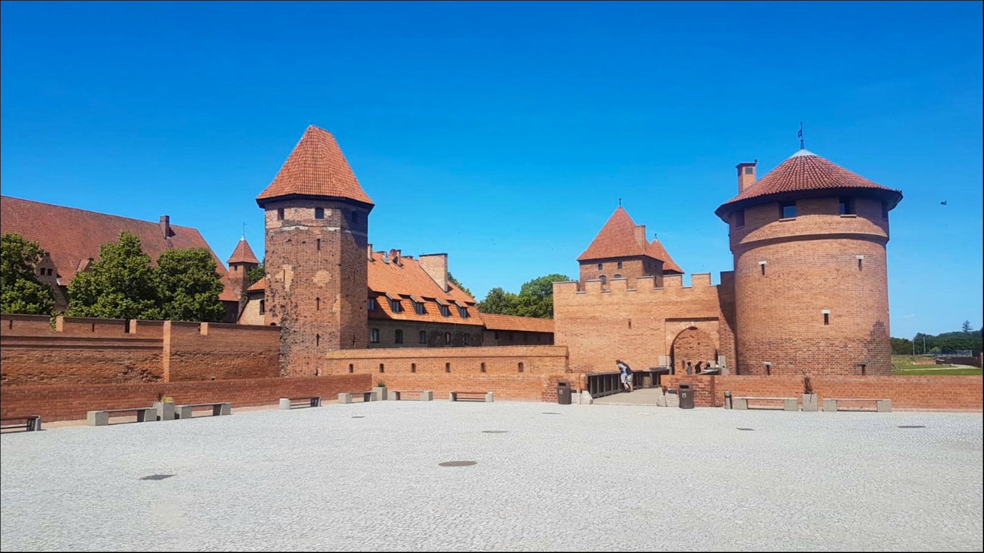Wallanlagen und Gräben. Im Laufe der Jahrhunderte wurde sie mehrmals zerstört und geplündert, aber immer wieder aufgebaut und vergrößert. Über 130 Jahre war die Burg Sitz der Hochmeister des Deutschen Ordens. Dieses Meisterwerk der spätgotischen Baukunst zählt seit 1997 zum UNESCO-Weltkulturerbe. Während der Führung erfahren Sie von den vielen Etappen der bewegten Geschichte der Marienburg. Für weitere 150 Jahre sind polnische Könige hier eingezogen, dann haben die Schweden die Burg besetzt und die Marienburg diente zeitweise sogar als Kaserne. Im Zweiten Weltkrieg wurde die Burg größtenteils zerstört und dann vom polnischen Staat wiederaufgebaut.